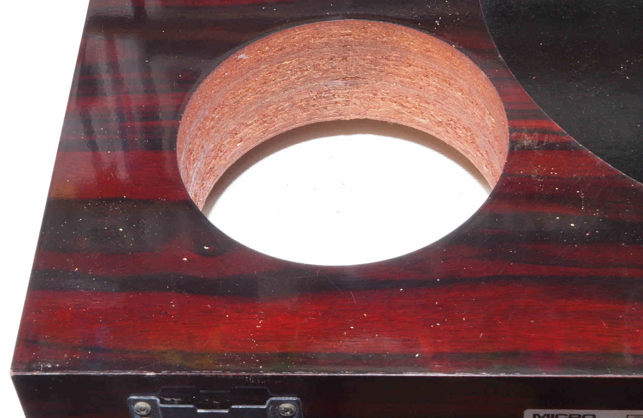 | W25. 修理中 モーター取付穴、タンテーブル軸受取付穴、反対側。 圧縮材にボンドを染みこませる。 | ||||||||||||||||||||||||||||||||||||||||||||||||||||