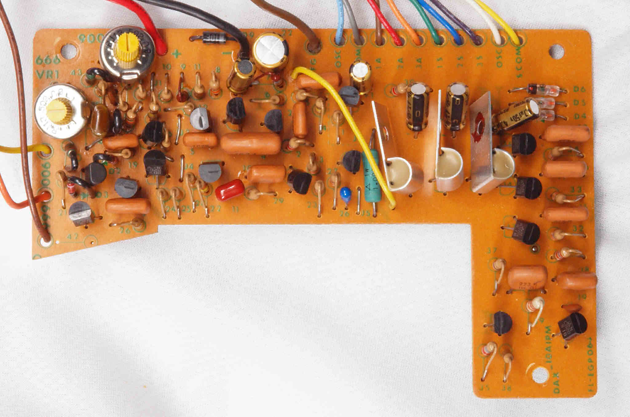 | C22. 修理中 電源・33/45切替基板。電解コンデンサー固定するトルエン溶媒の接着剤。 | ||||||||||||||||||||||||||||||||||||||||||||||||||||