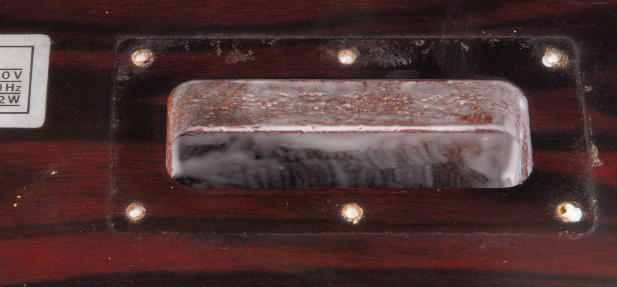 | W75. 修理前 電源ソケット、端子板取付け穴、反対側。 圧縮材にボンドを染みこませる、ネジ穴も塗る。 | ||||||||||||||||||||||||||||||||||||||||||||||||||||