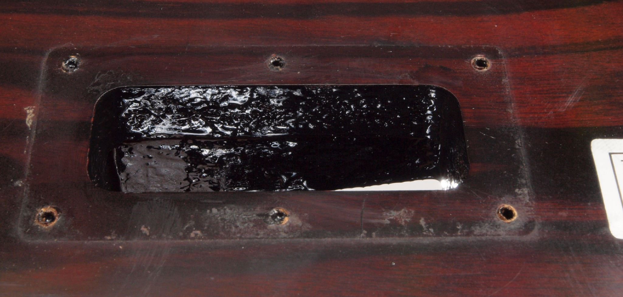 | W82. 修理中 下蓋表右後ろ角。圧縮材の接着材が劣化し膨れている。 | ||||||||||||||||||||||||||||||||||||||||||||||||||||