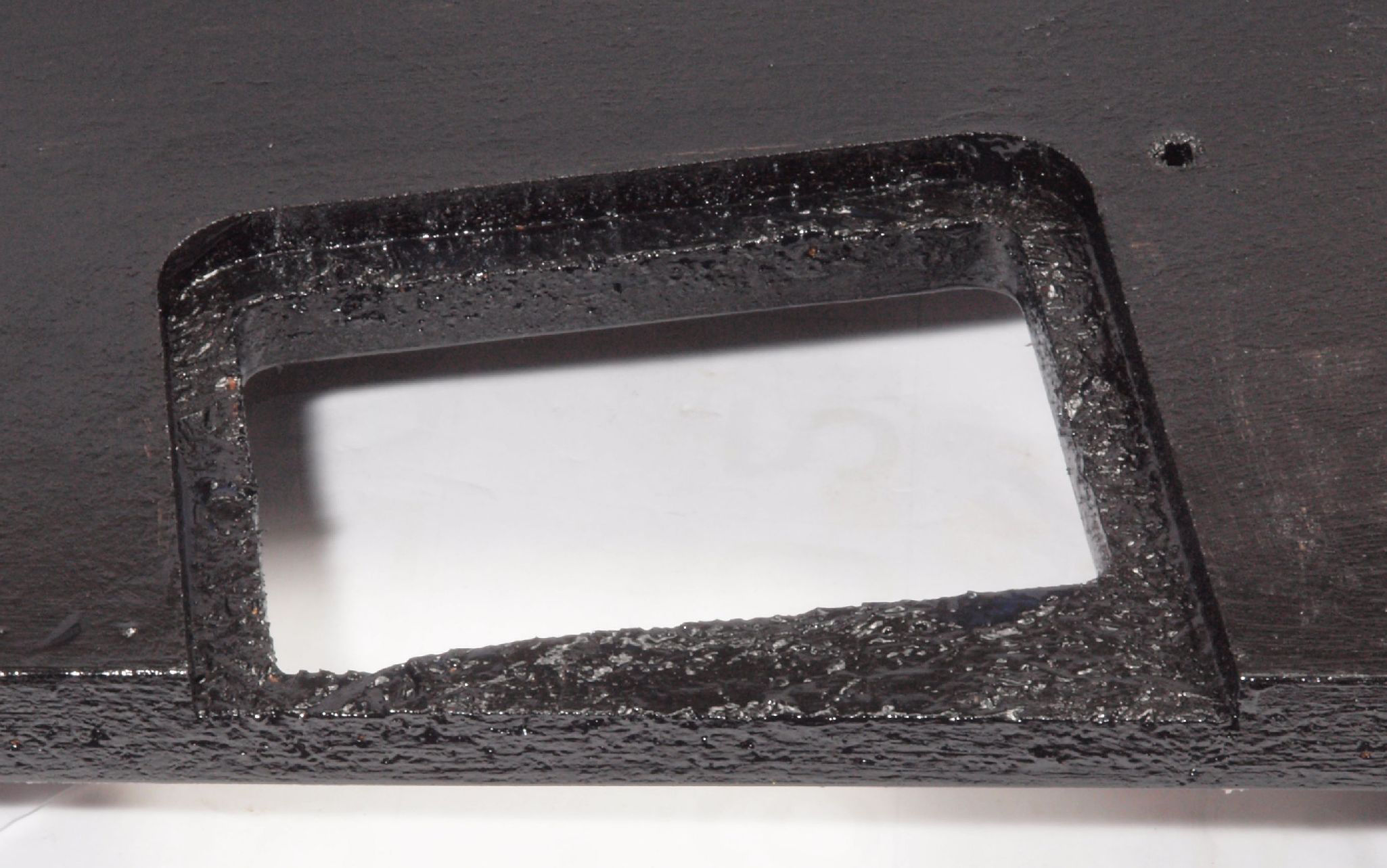 | WB3. 修理後 下蓋のアーム取り付穴。 乾燥後さらにペンキを塗る。 | ||||||||||||||||||||||||||||||||||||||||||||||||||||
