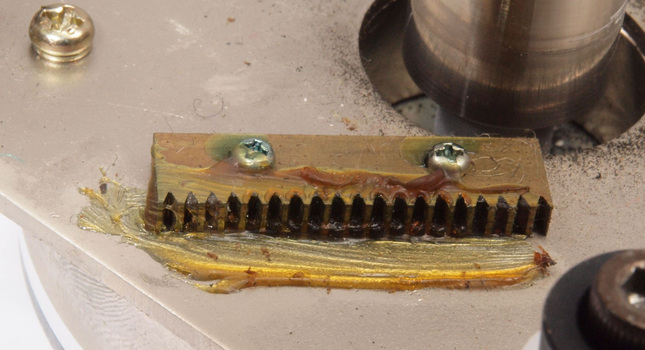 | C44. 修理(清掃)中 モーター移動用ラック歯車。 固着した古いグリスを撤去。 | ||||||||||||||||||||||||||||||||||||||||||||||||||||
