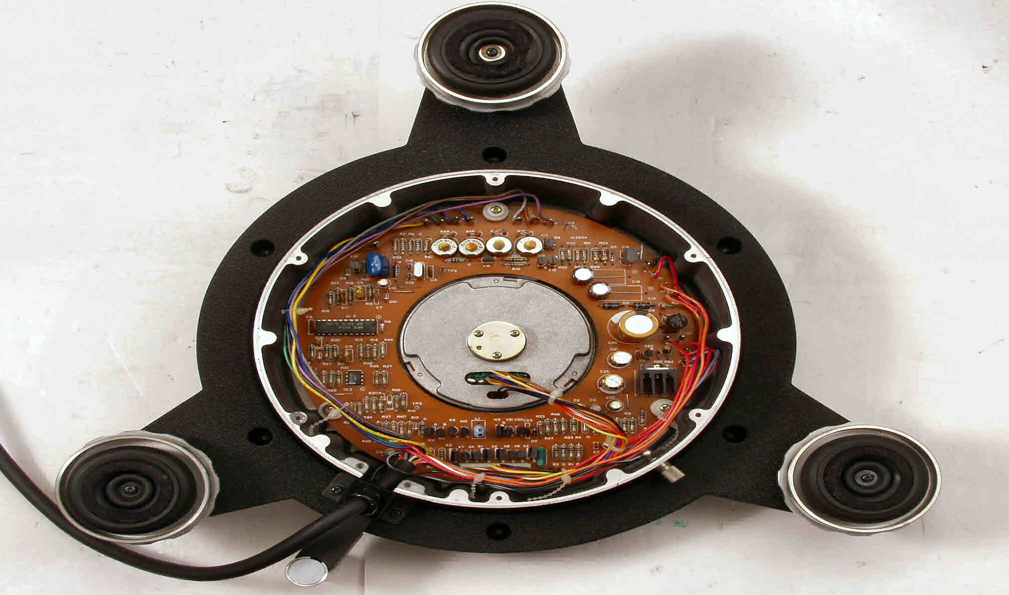 | C3A. 修理前 モーター軸(ターンテーブル軸)底側軸受け、グリスが真黒、オイルは抜くために注油した物電源基板 |