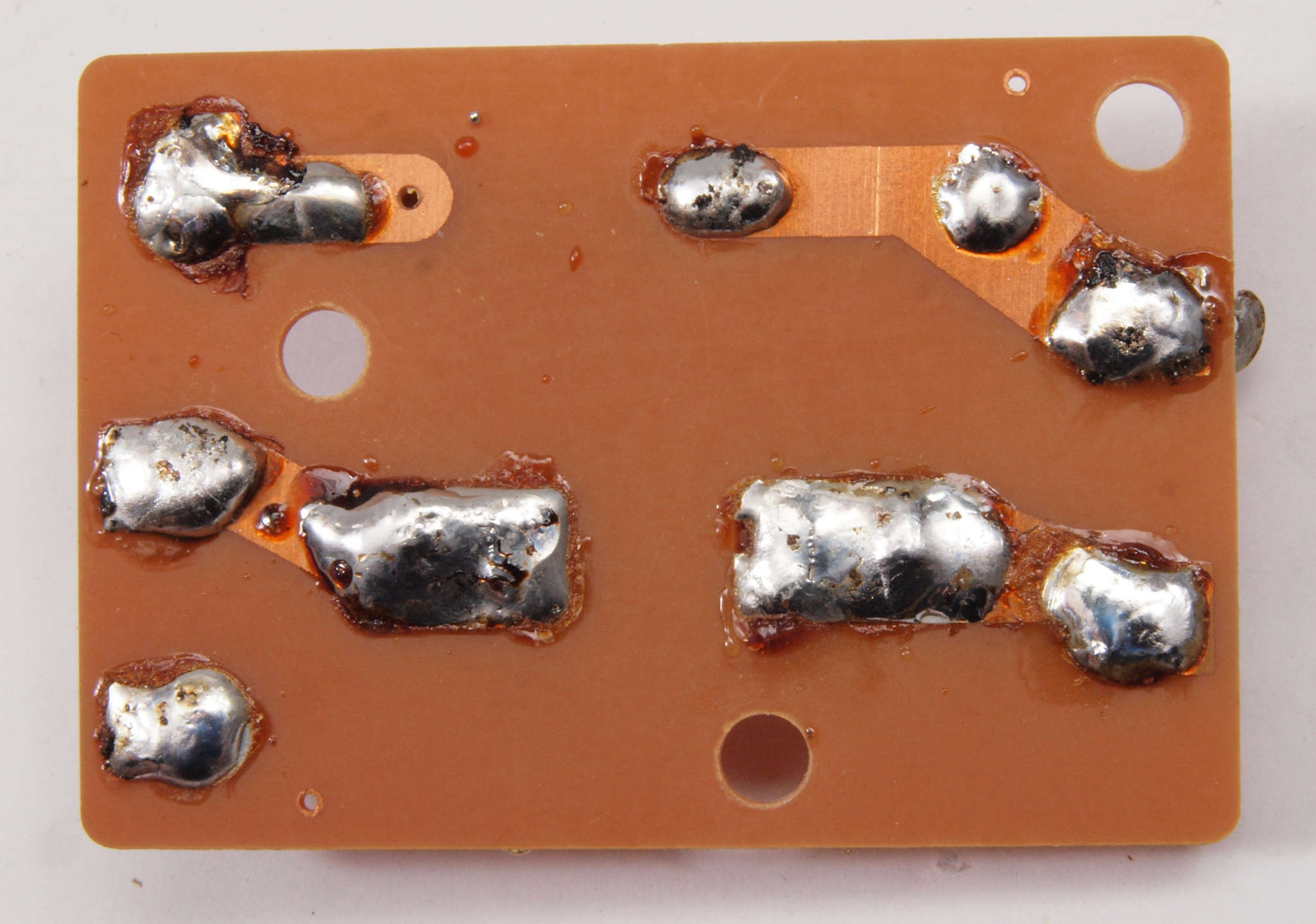 | C94. 完成ヒューズ基板裏。 余分なフラックスを落として、コート液を塗る。 | ||||||||||||