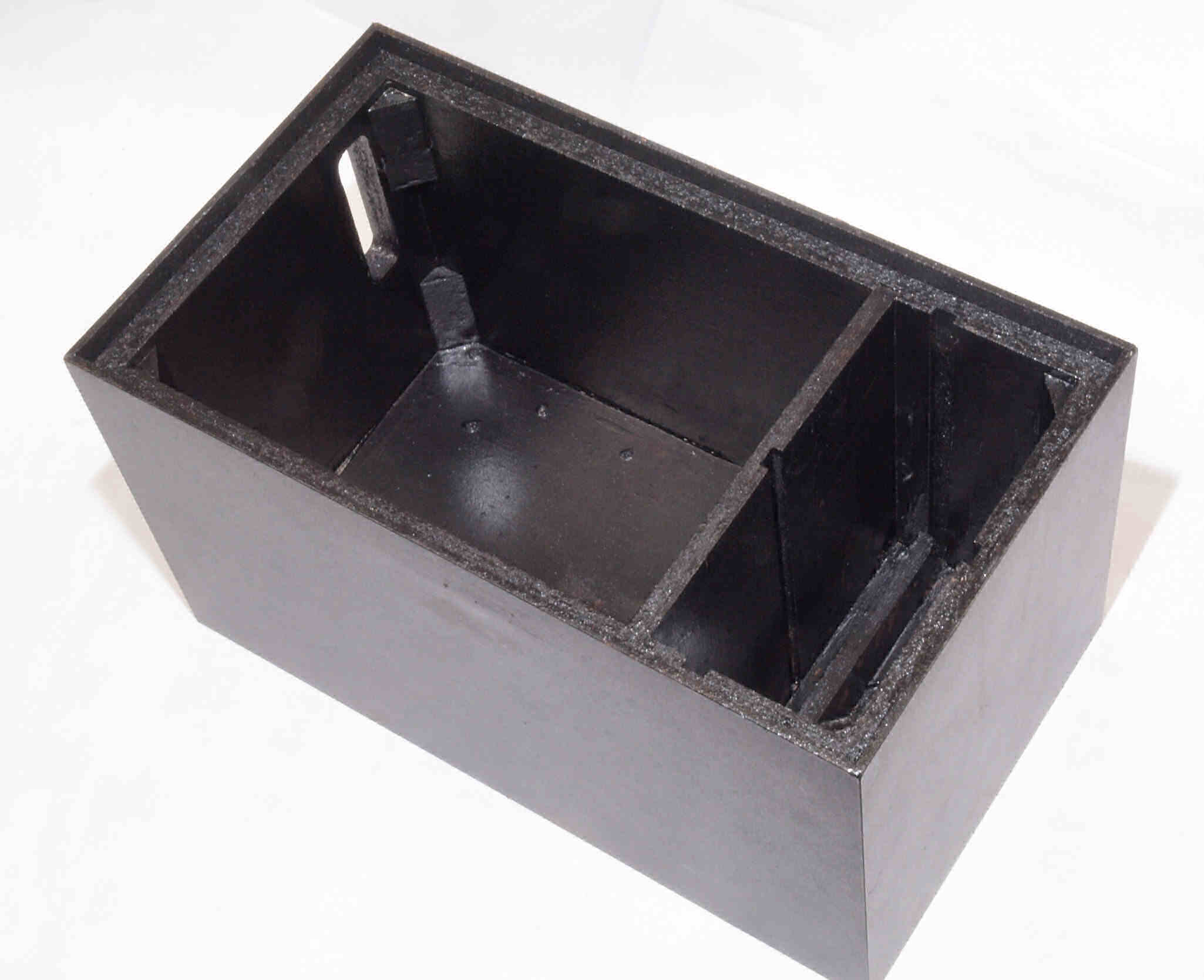 | C31. 修理前 接着材が劣化した木箱、下前右から見る。仕切り板が接着されている。 | ||||||||||||
