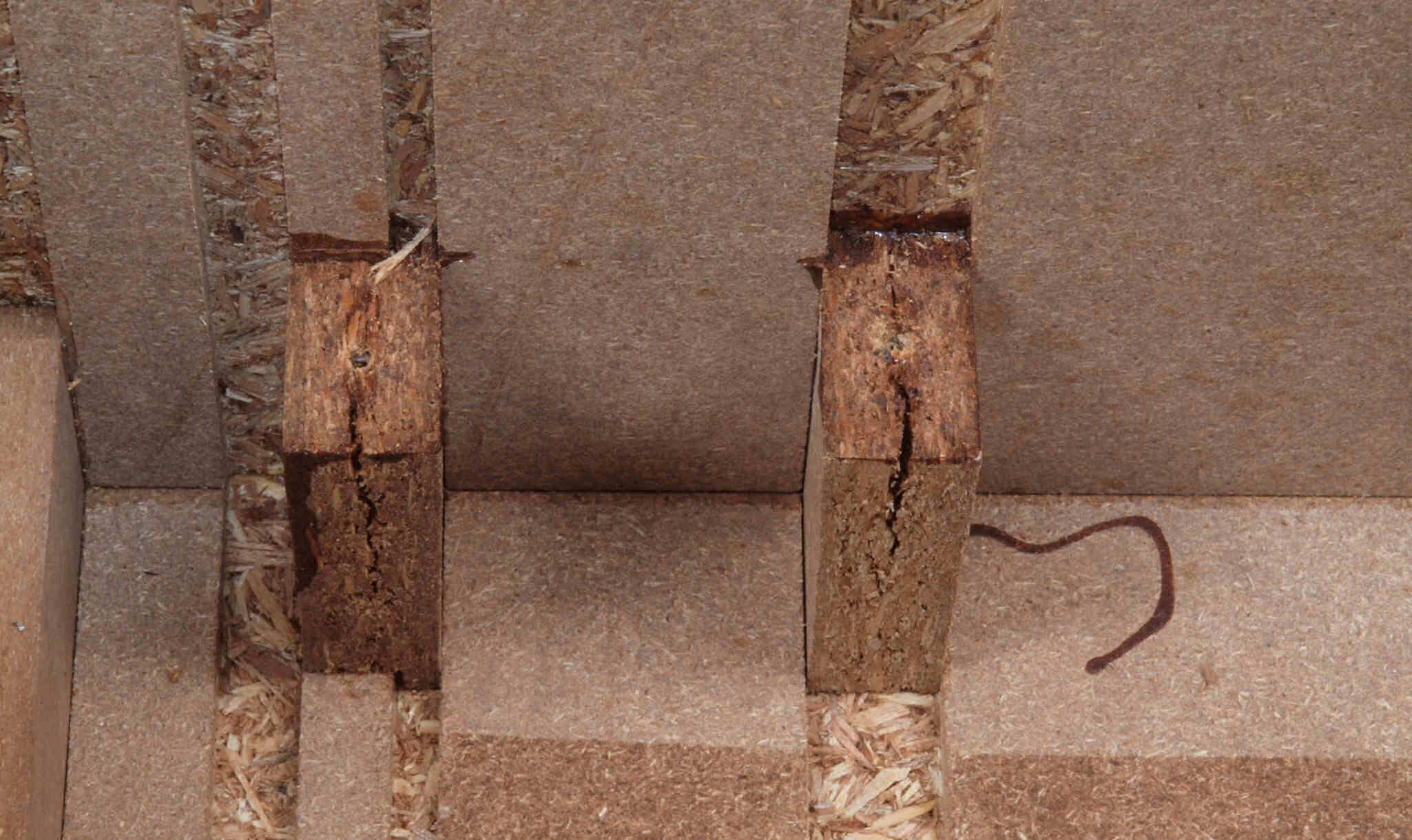 | C41. 修理前 圧縮材の接着材が劣化した木箱。 | ||||||||||||