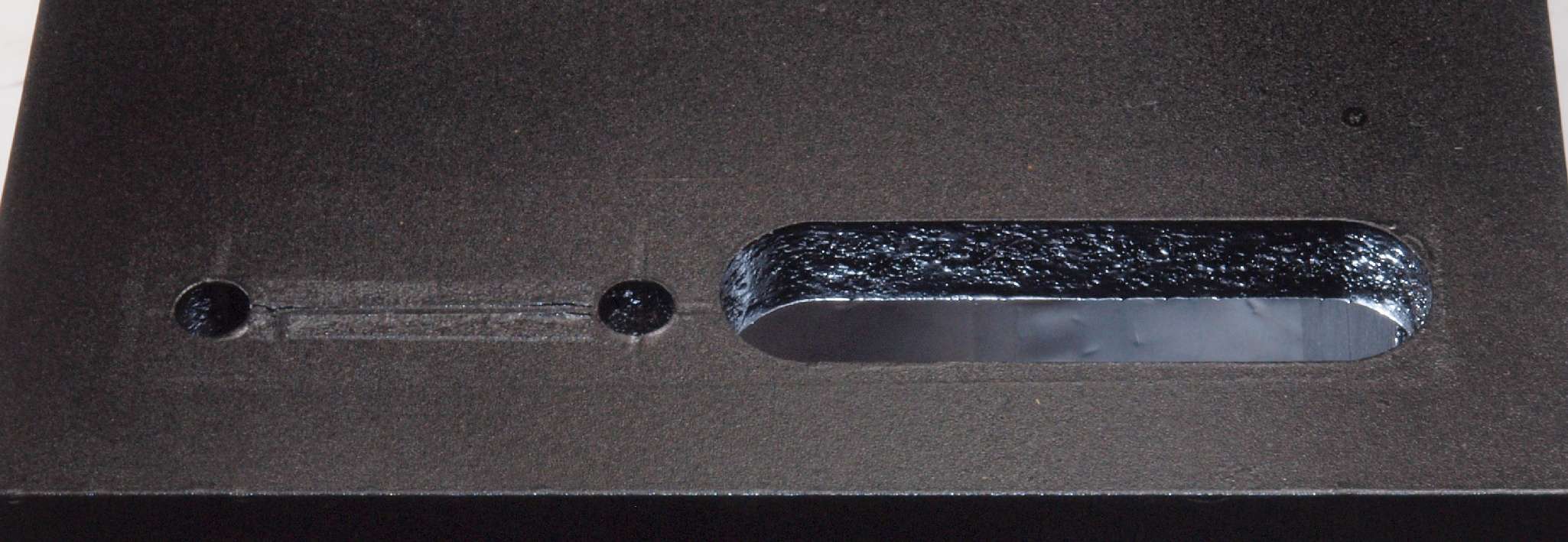 | C46. 修理後 SW、LED表示板取り付け穴。 さらに、塗装する。 |