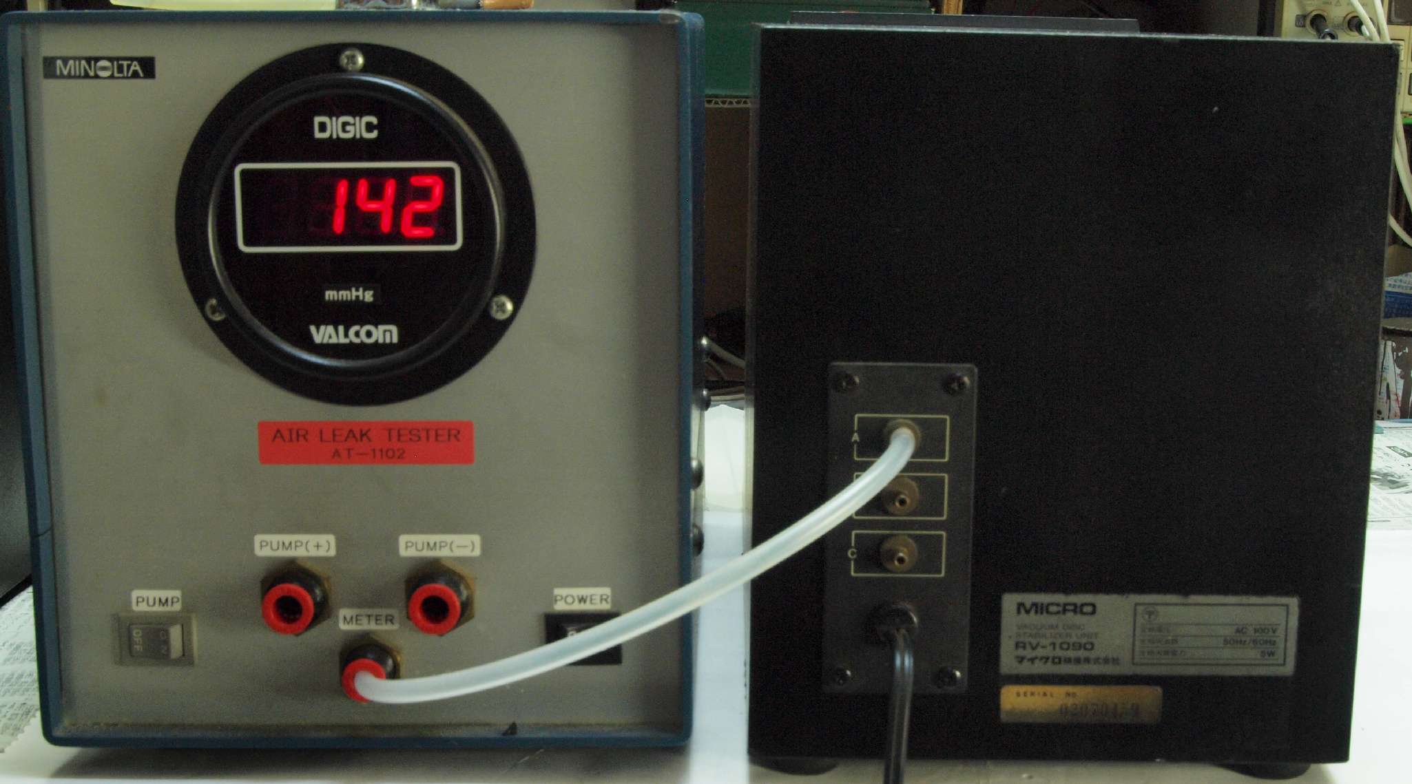 | E2. 「B=吸い込」 の圧力測定。 Aより低いのは圧力調整バイパスが有る為。 |