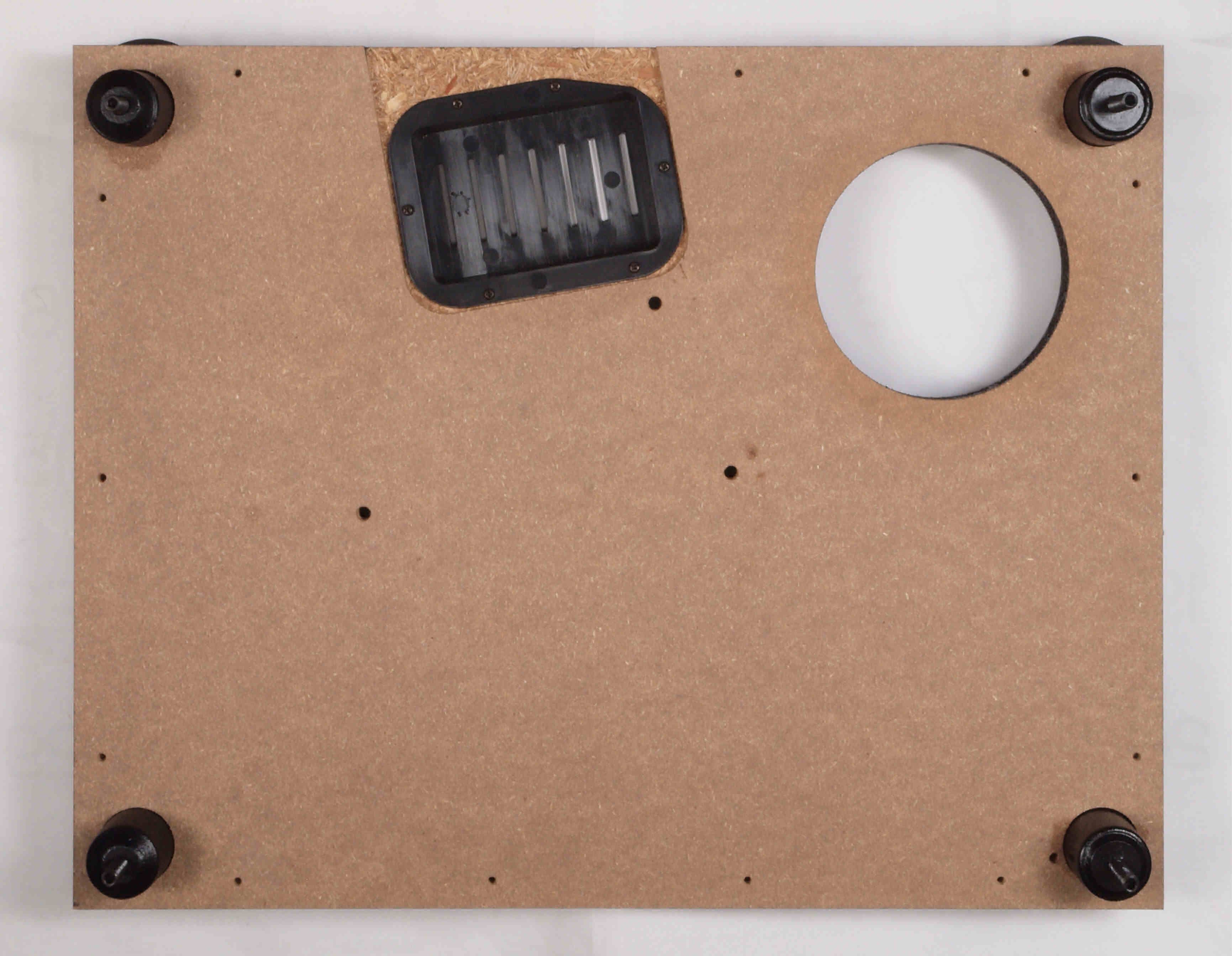 | W72. 修理(塗装)後 底板裏側、 前右から。 圧縮材に、水性木工ボンドを塗布。 | ||||||||||||||||||||