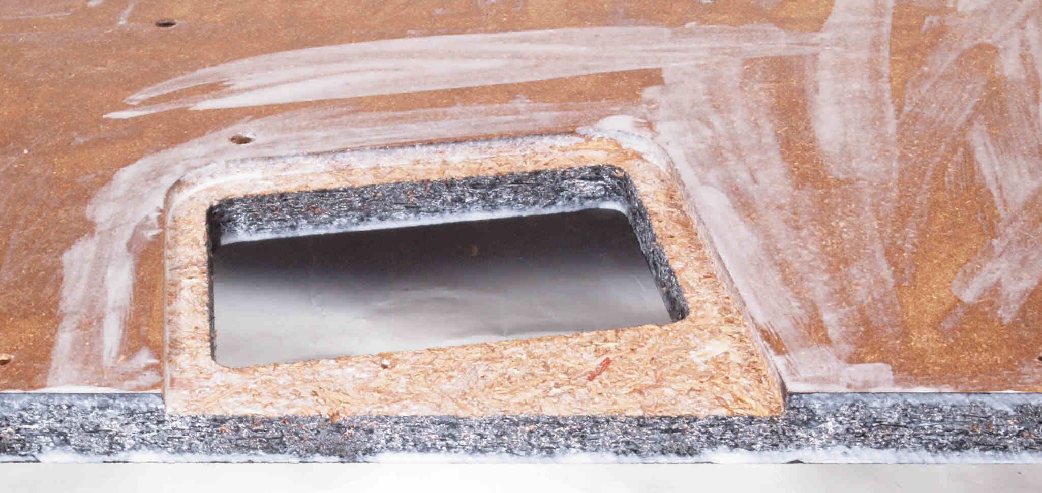 | W75. 修理中 底板裏側、 後左から。 圧縮材に、水性木工ボンドを塗布する。 | ||||||||||||||||||||