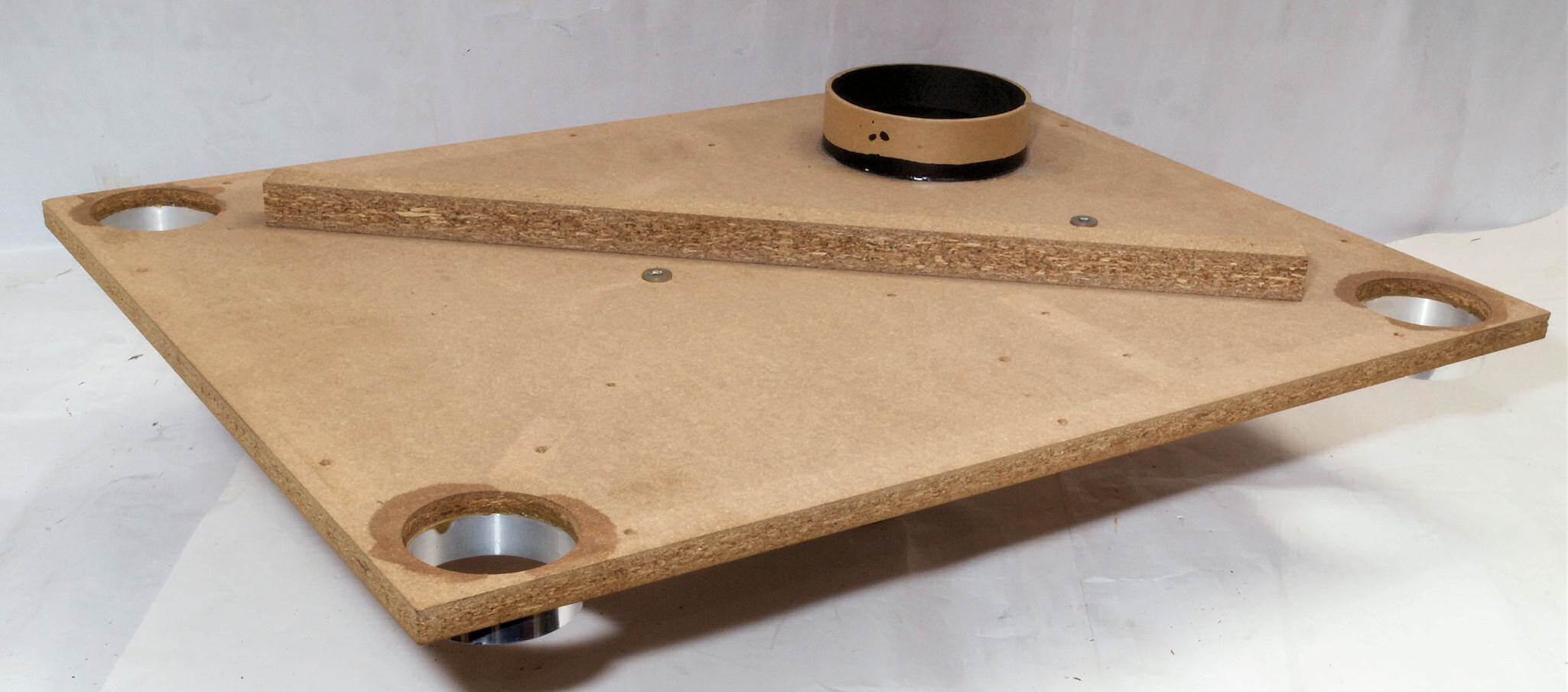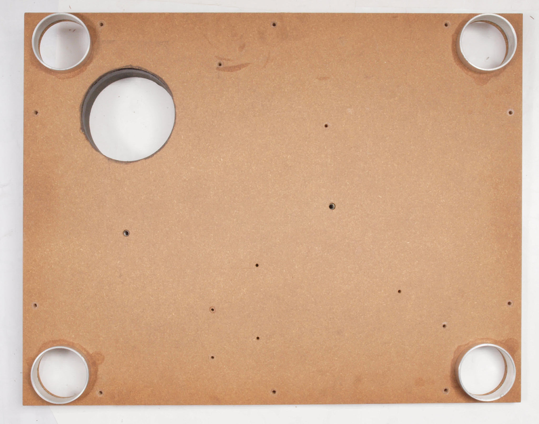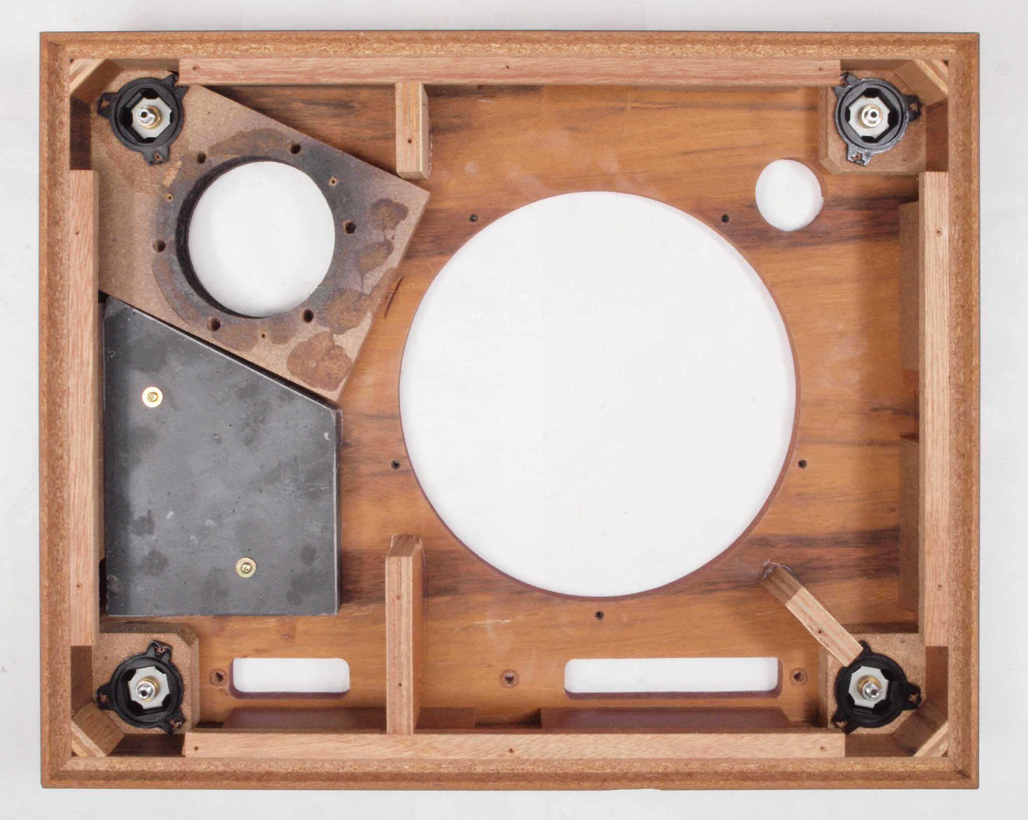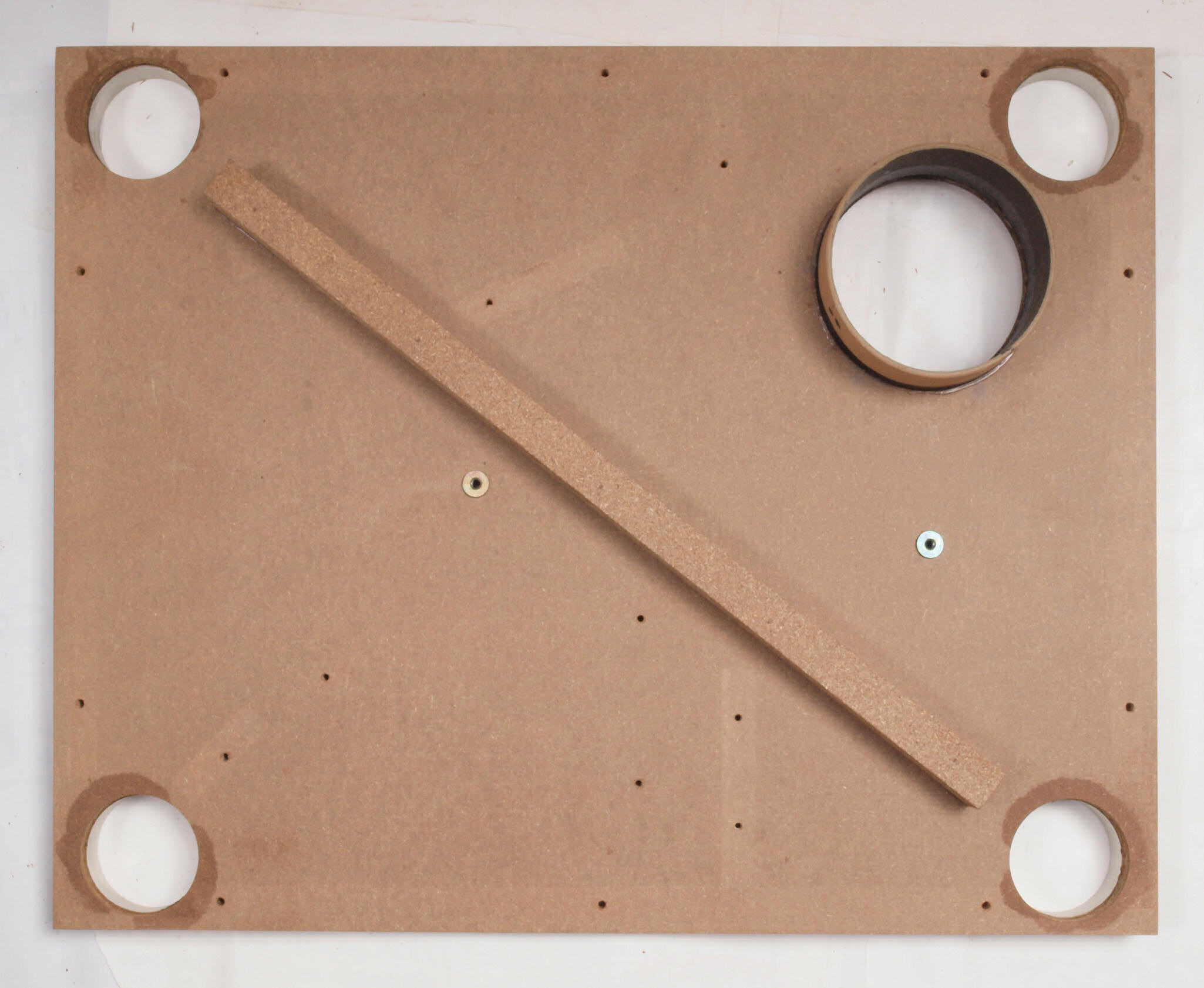 | W32. 修理中 本体木枠下。 圧縮材にボンドを染みこませる、ネジ穴も塗る。 | ||||||||||||||||||||||||||||||||||