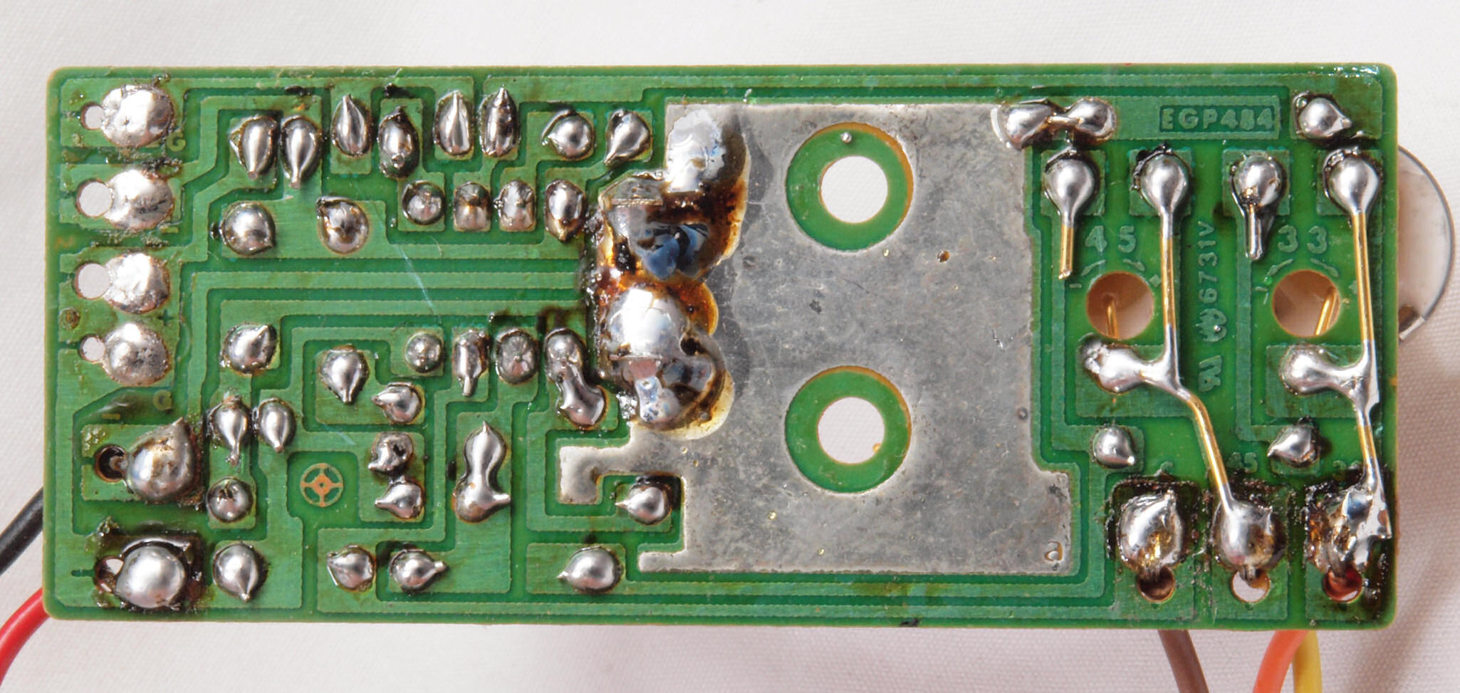 | C14. 修理(半田補正)後 制御基板裏。 半田を全部やり直す。 | ||||||||||||||||||||||||||||||||||