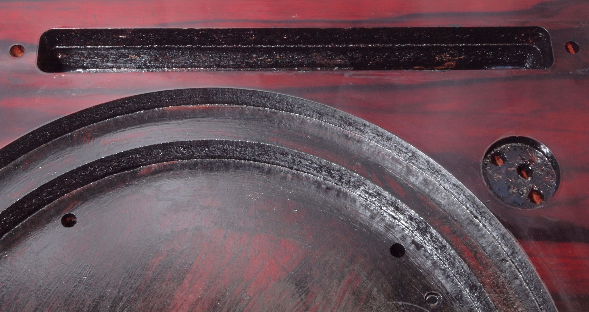 | W7C. 修理後 下蓋のトランスカバー取り付穴、反対側。 乾燥後さらにペンキを塗る。 | ||||||||||||||||||||||||