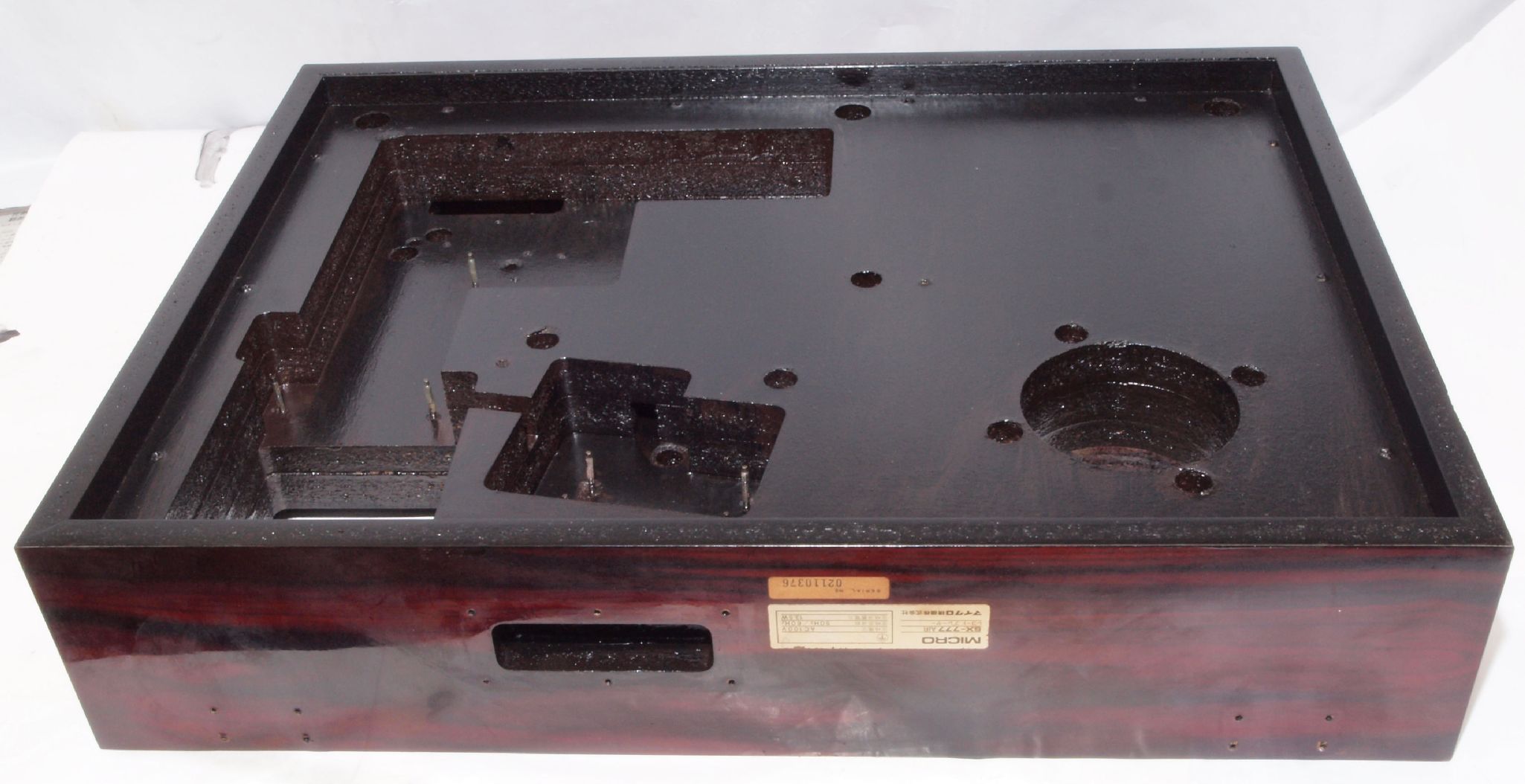| W. 下蓋及び本体木部 修理状況。 画像をクリックすると、大きく(横幅2050ドット)表示されます。 W1. 修理前 モーター、基板、アーム架台を取り本体上から。 |