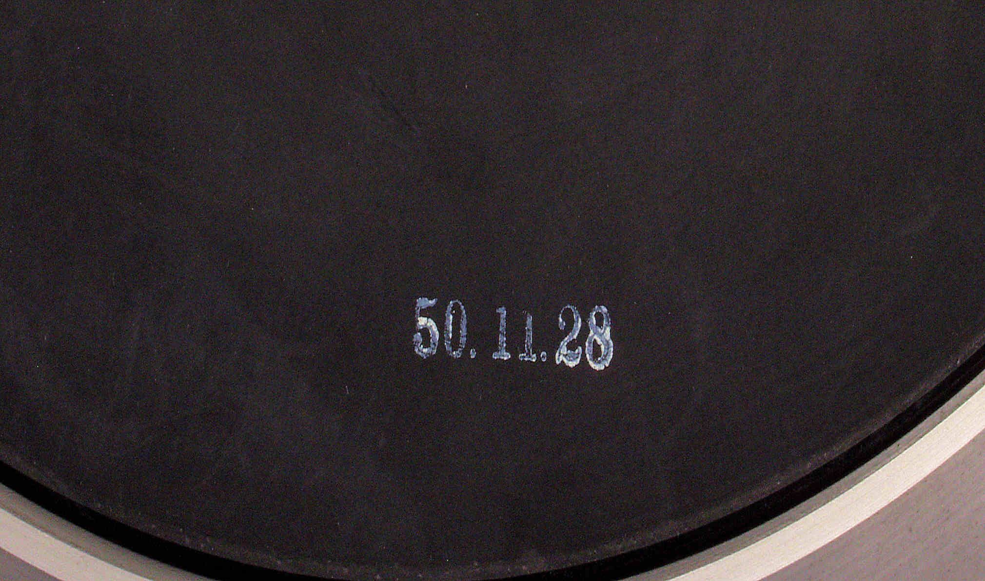 A44. 点検中 ターンテーブルシート(マット)裏の製造日付は 昭和50年(1975)11月28日