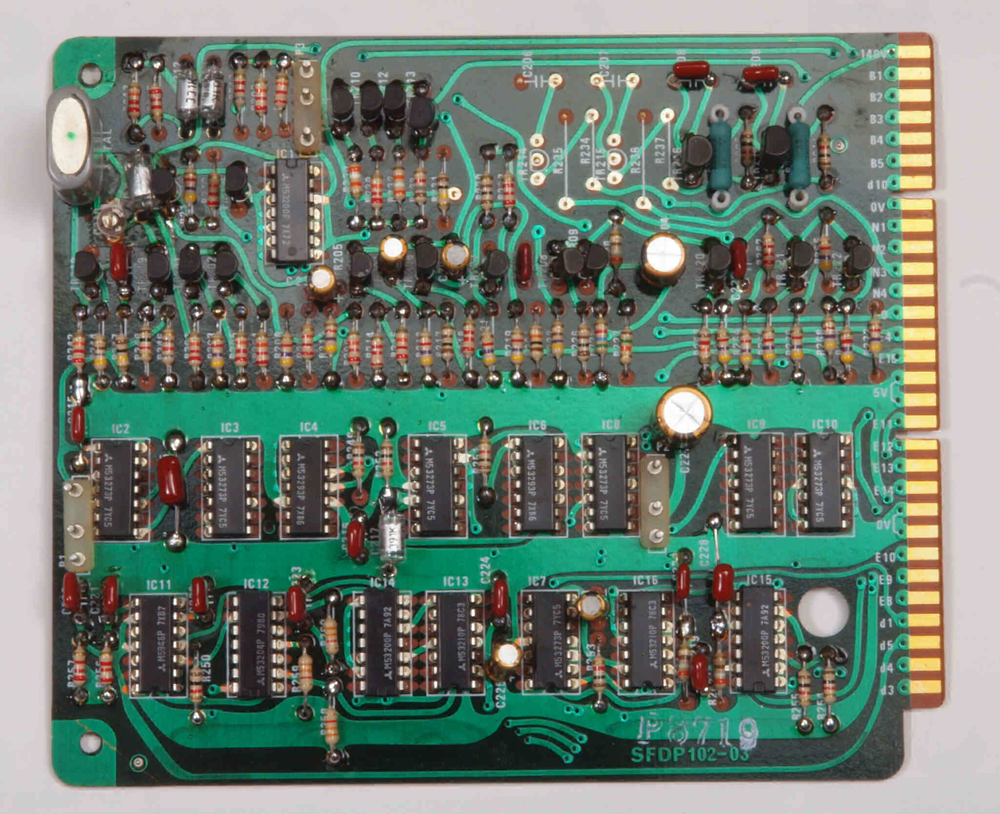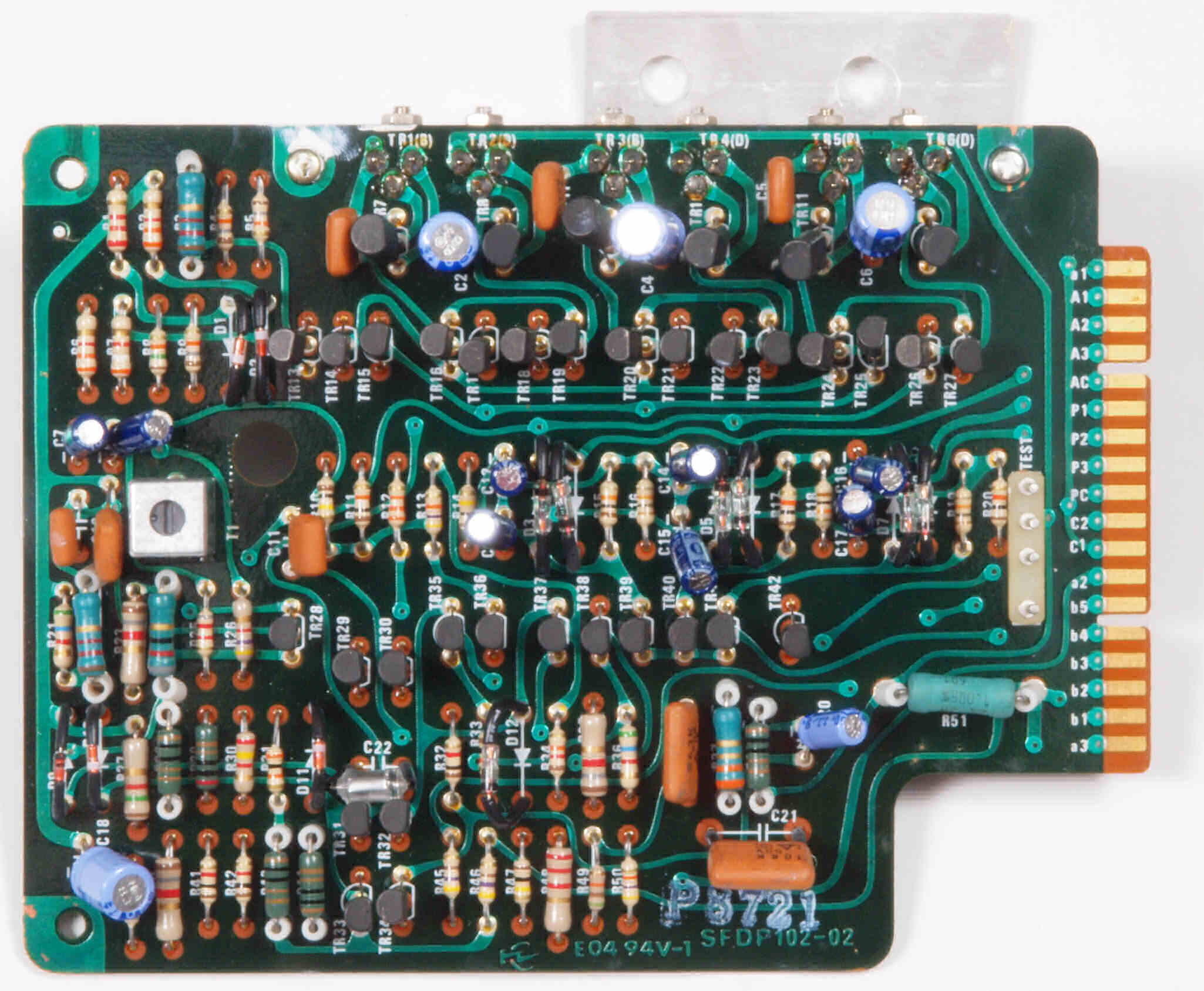 C62. 修理後 基準発生・速度切替え分周基板 電解コンデンサー7個、フイルムコンデンサー16個交換