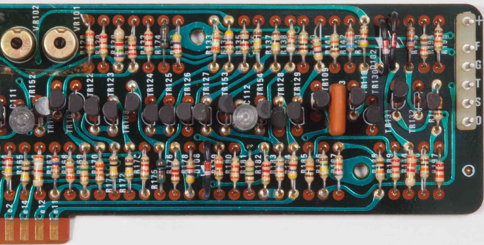 C631. 修理前 基準発生・速度切替え分周基板、スルホール半田1