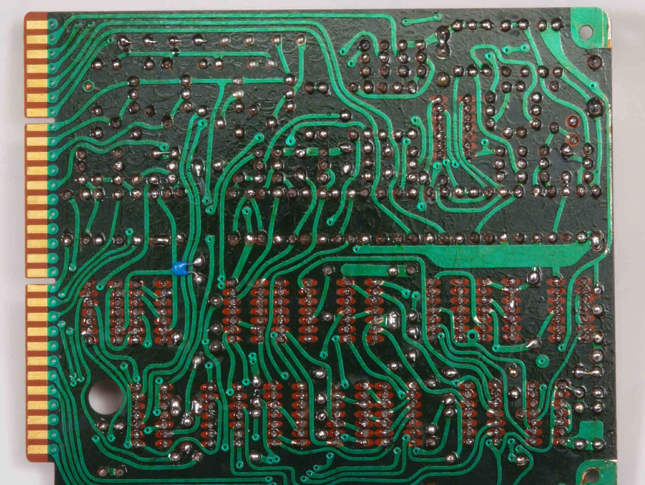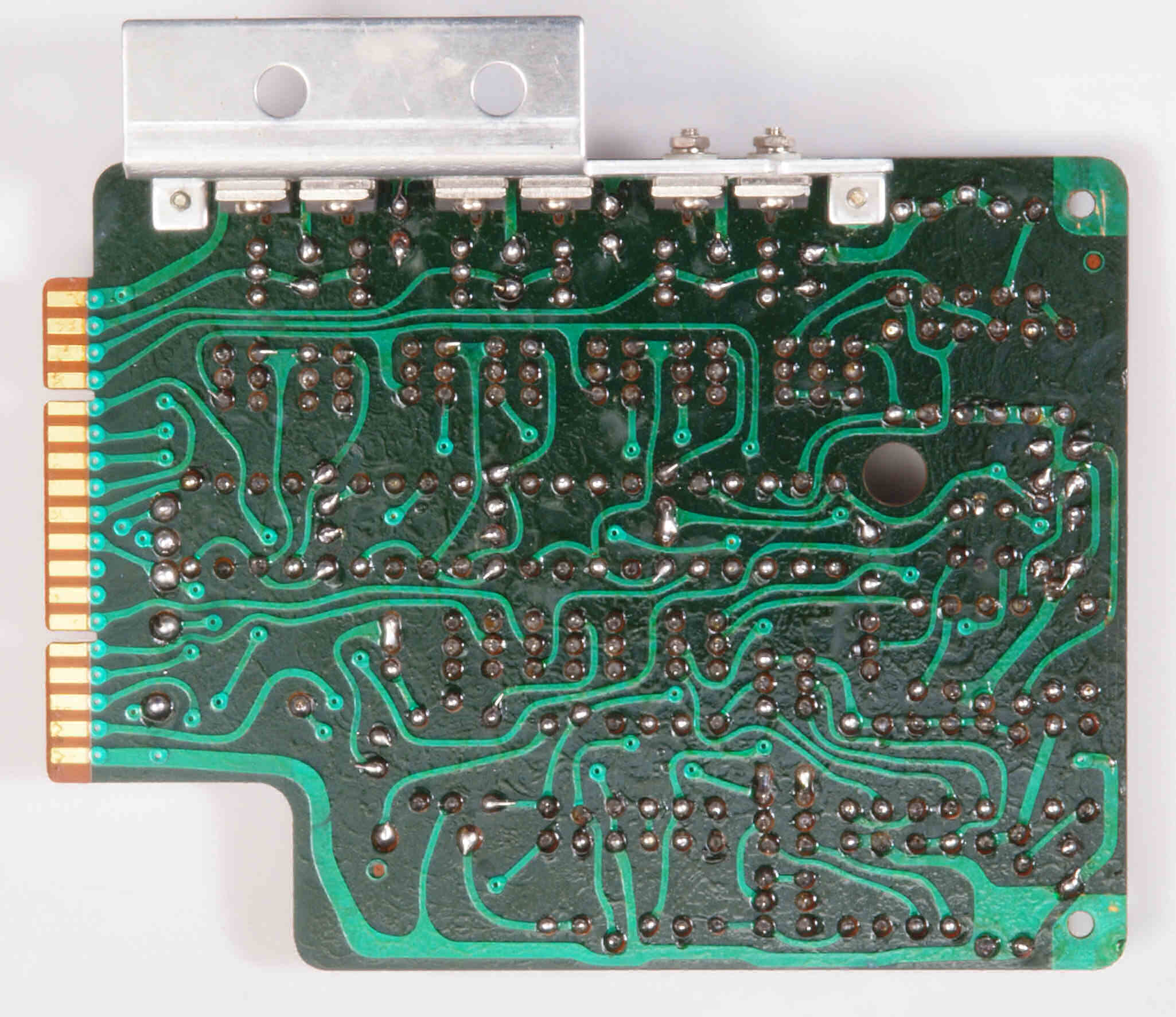 C732. 完成駆動基板裏。余分なフラックスを落として、コート液を塗る。スルホール半田1。