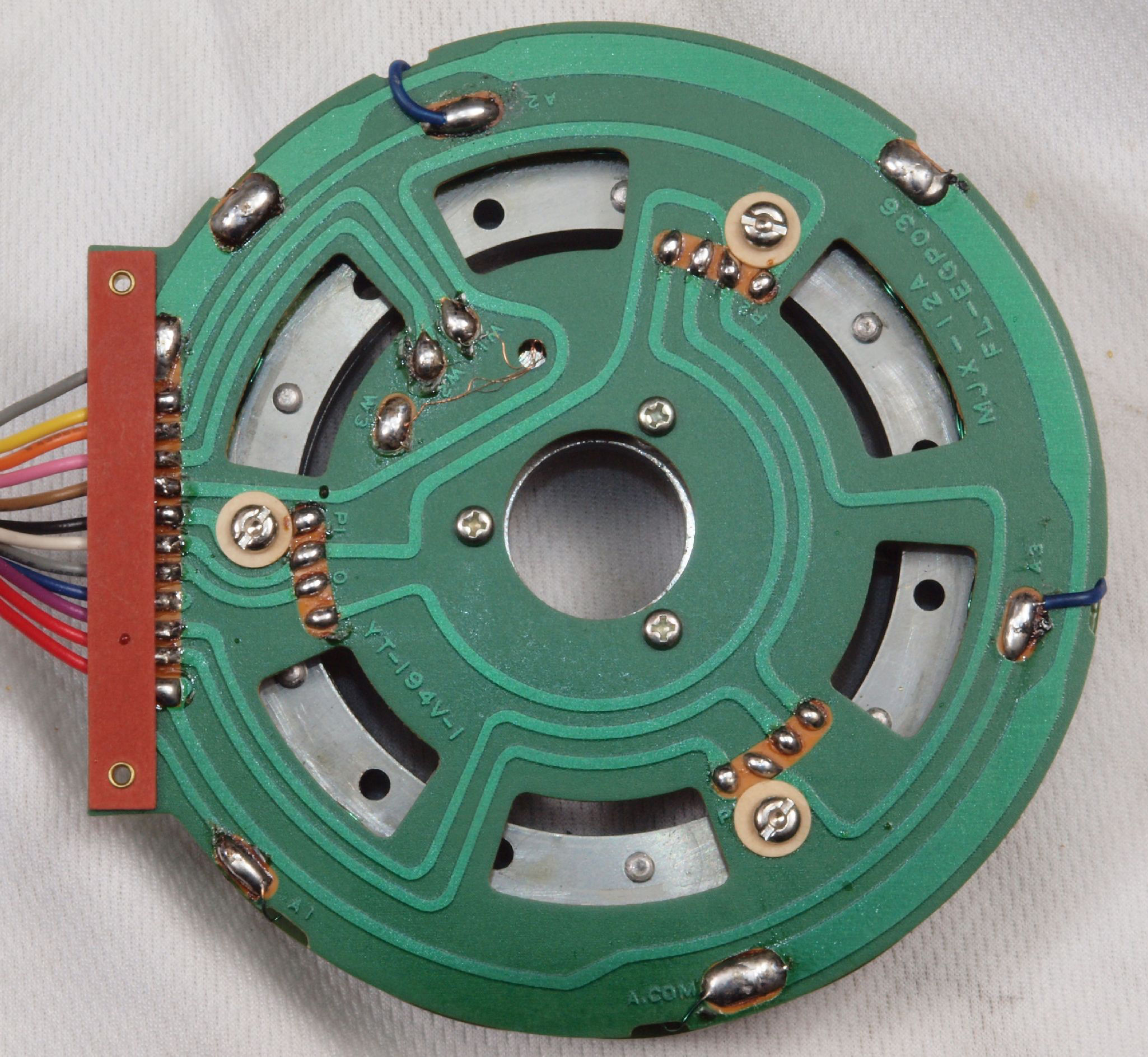 | M63. 完成固定子巻線基板裏。 余分なフラックスを落として洗浄し、コート液を塗る。 | ||||||||||||||||||||||||||||||||||||
