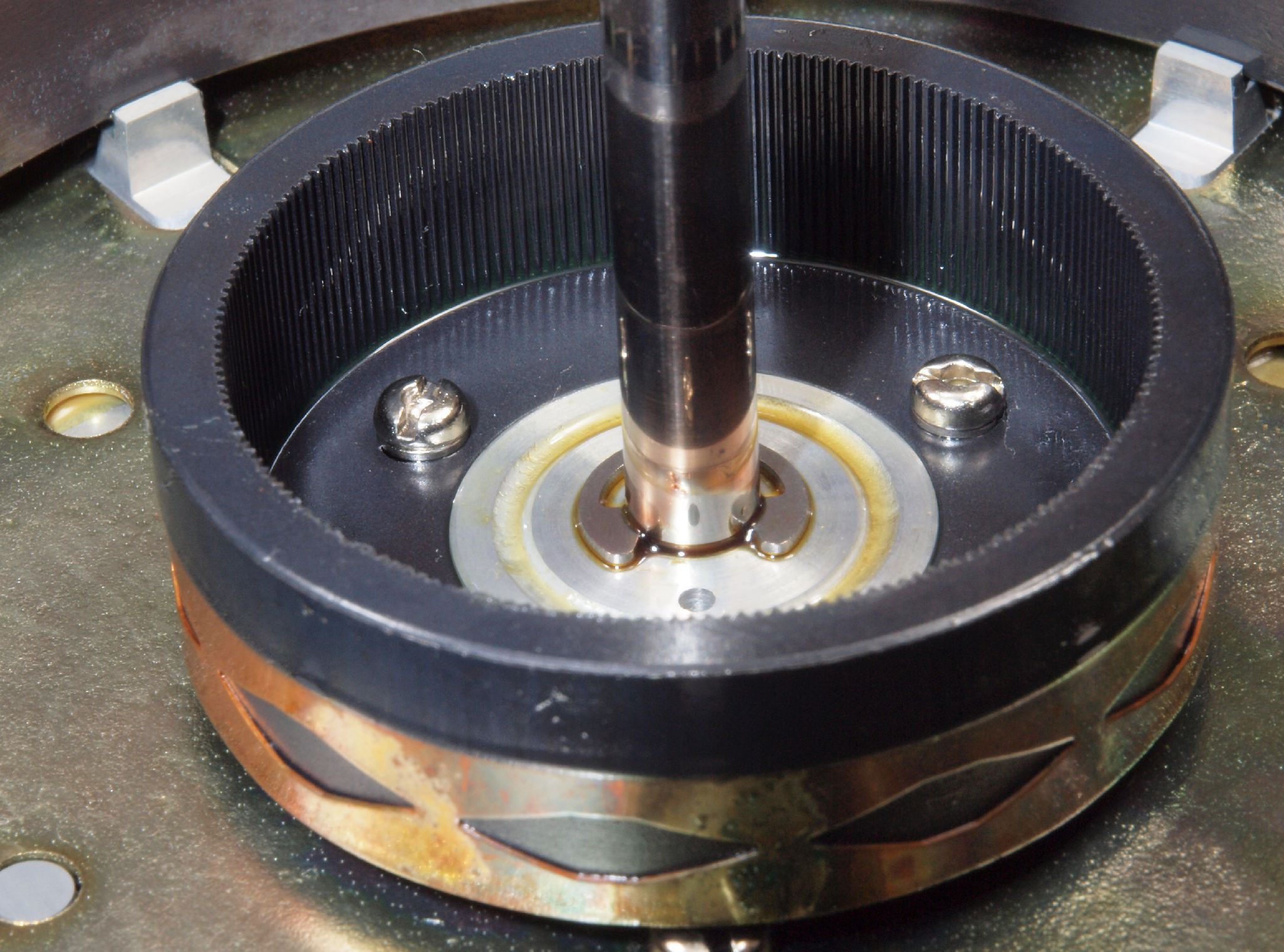 | M42. 修理後 モータ回転子裏。 今後の為、錆止めを軽く塗布する。 | ||||||||||||||||||||||||||||||||||||