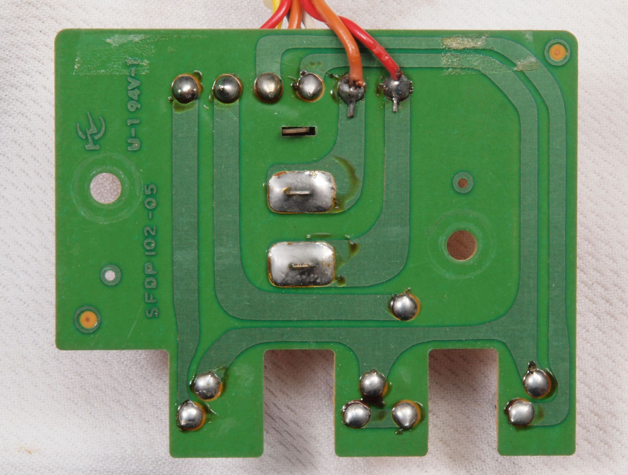 | C6A. 完成SW基板裏。 余分なフラックスを落として洗浄し、コート液を塗る。 | ||||||||||||||||||||||||||||||||||||
