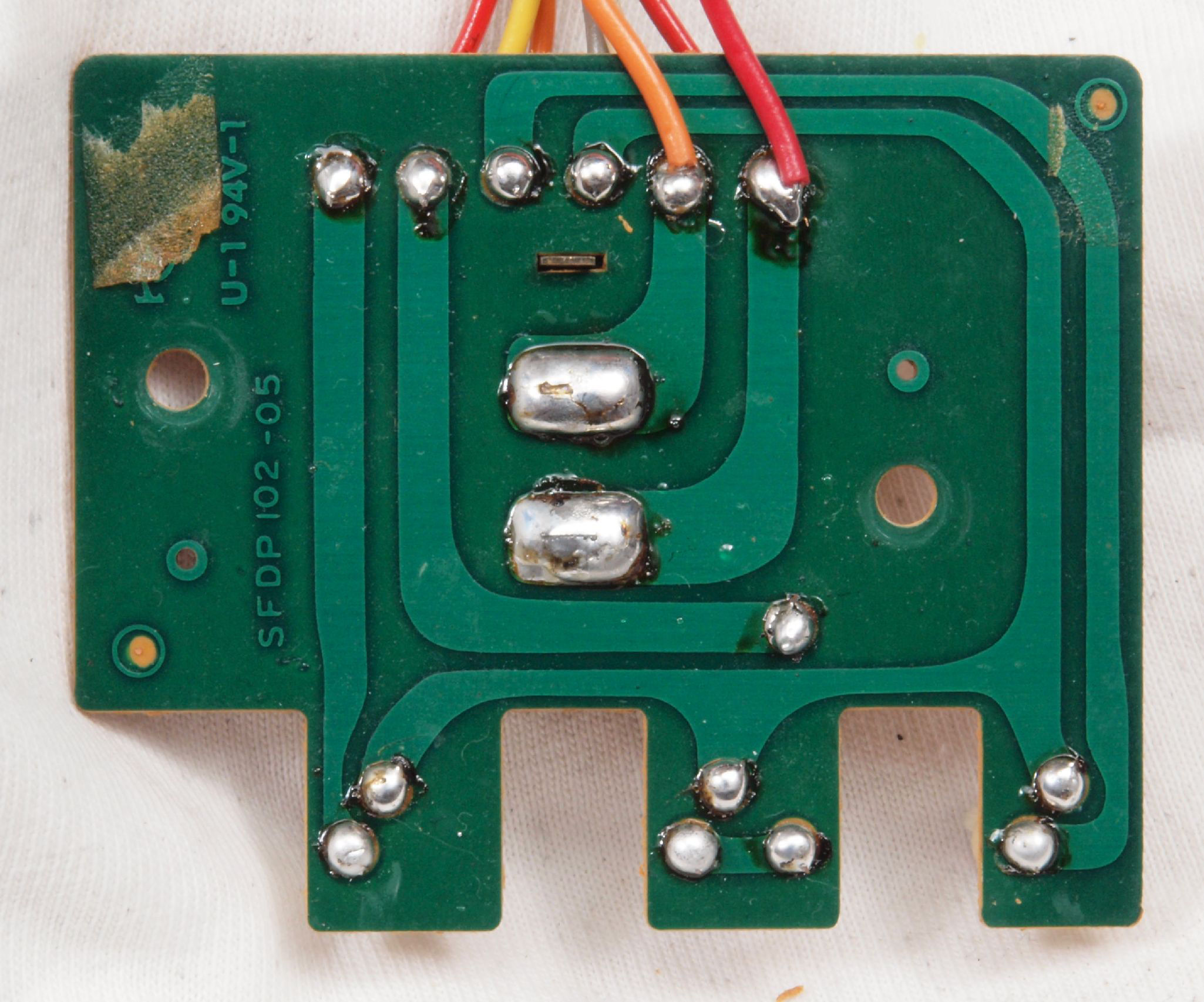 | C64. 修理前 速度制御基板、スルホール半田1。 | ||||||||||||||||||||||||||||||||||||
