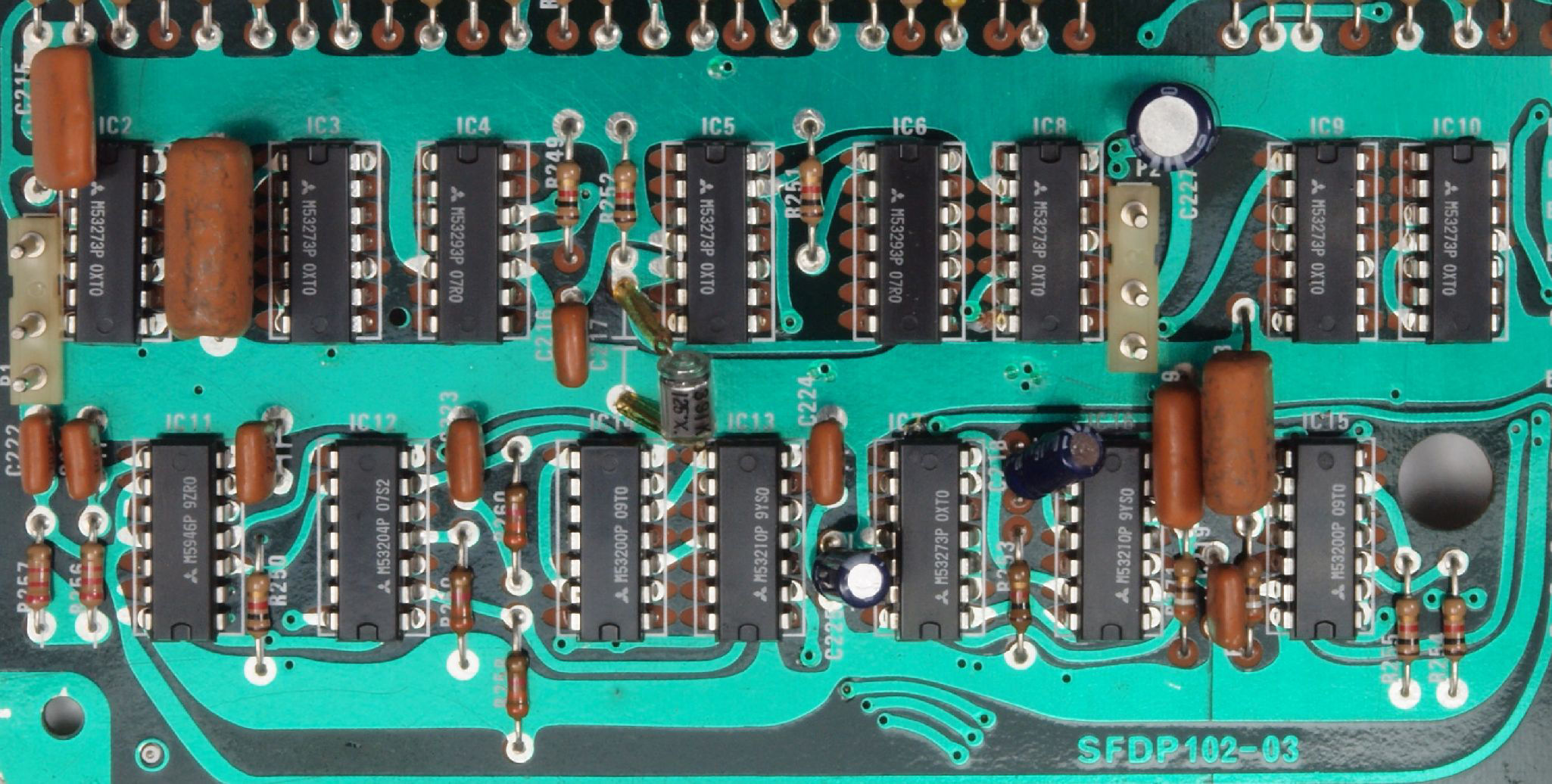 | C73. 修理(半田補正)後 メイン基板。全ハンダをやり直す。電解コンデンサー1個、フイルムコンデンサー2個交換。 | ||||||||||||||||||||||||||||||||||||