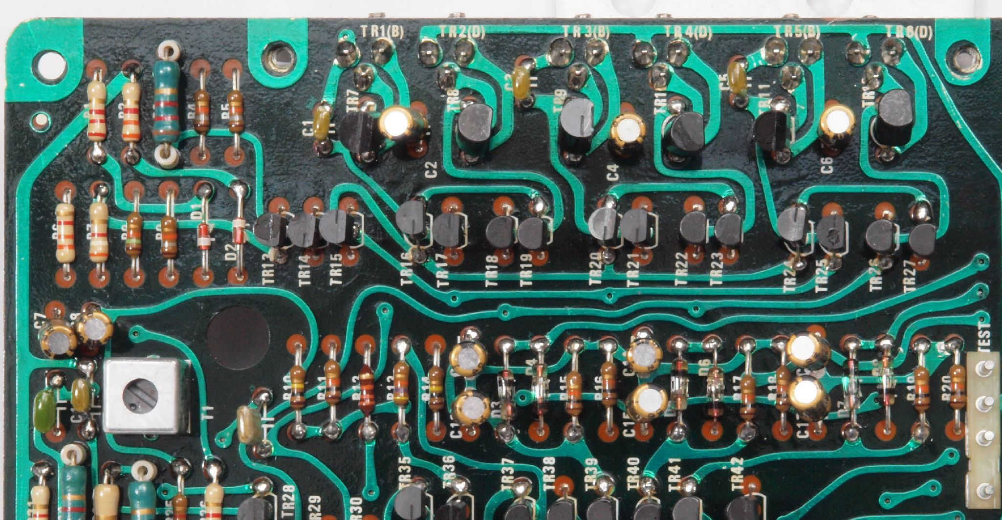 | C78. 修理(半田補正)後 メイン基板裏。全ハンダをやり直す。電解コンデンサー1個、フイルムコンデンサー2個交換。 | ||||||||||||||||||||||||||||||||||||