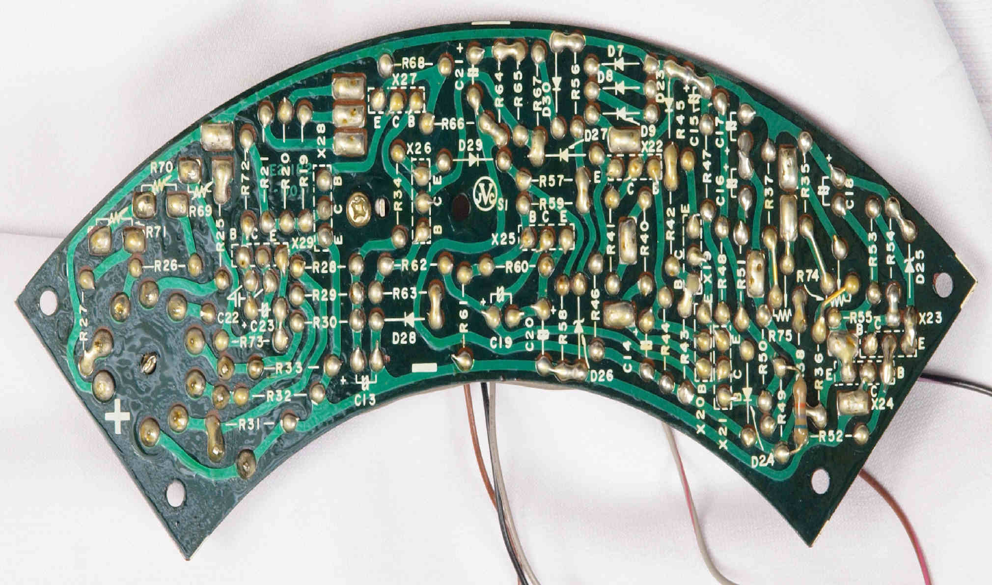 | C12. 修理後 基板 半固定VR2個、電解コンデンサー10個、TR(トランジスター)8個交換 | ||||||||||||||||||||
