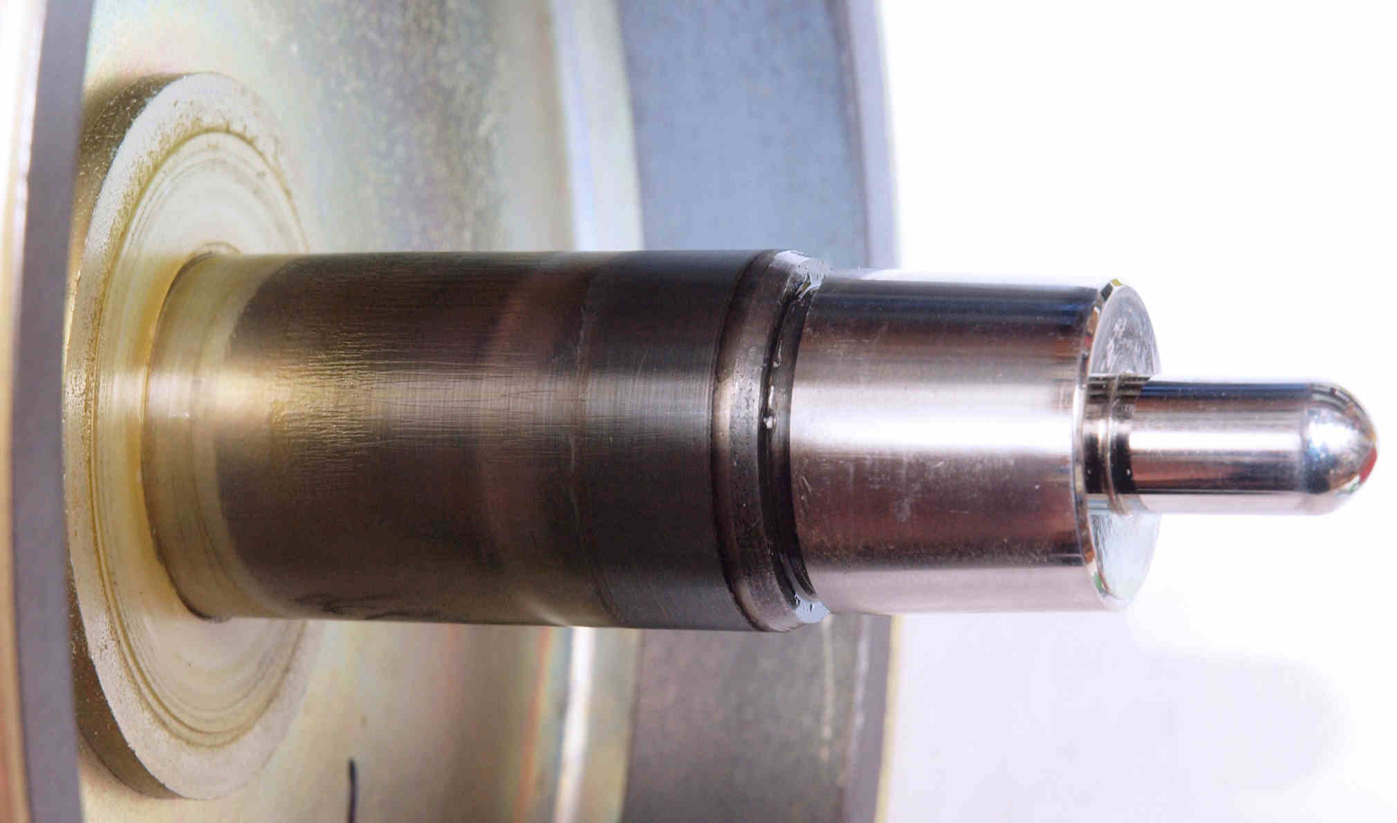 | M31. 修理中 モーター軸、真ん中のみぞ下の黒い部分が軸受けに当たる所。 | ||||||||||||||||||||
