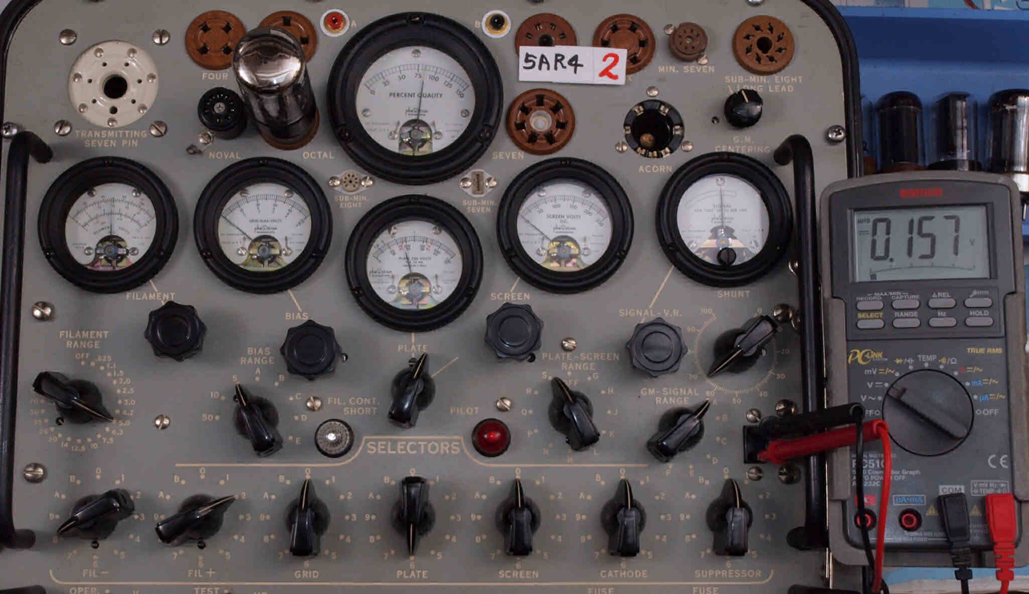 | E12. 1本目 5AR4 ユニット2測定。 エミッション表示=82、 Ip=0.149V/50Ω=2.98mA。 |