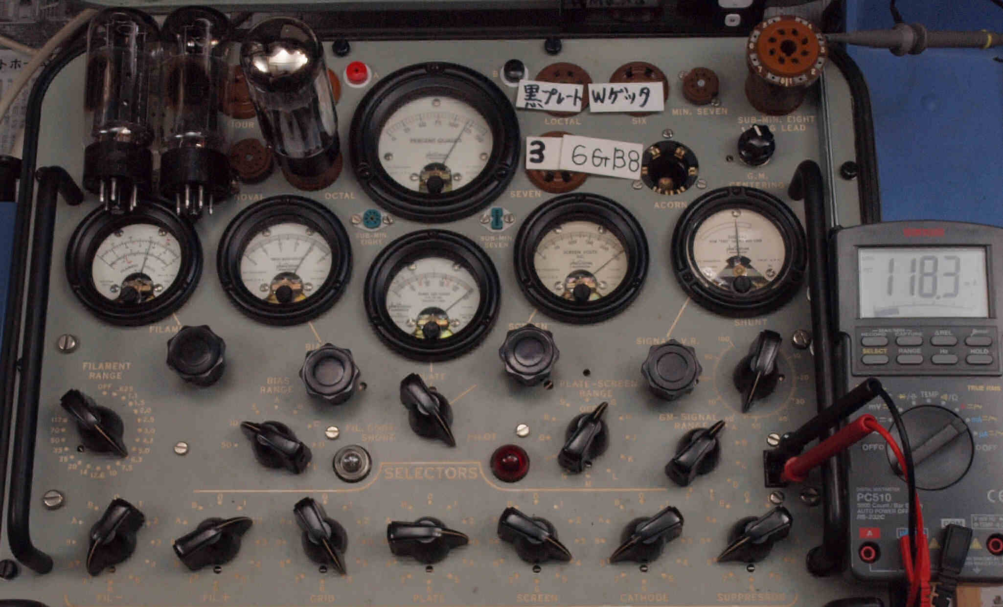 J3. 3本目 6G-B8 測定。 Gm=24000μmho、Ip=118.3mA。