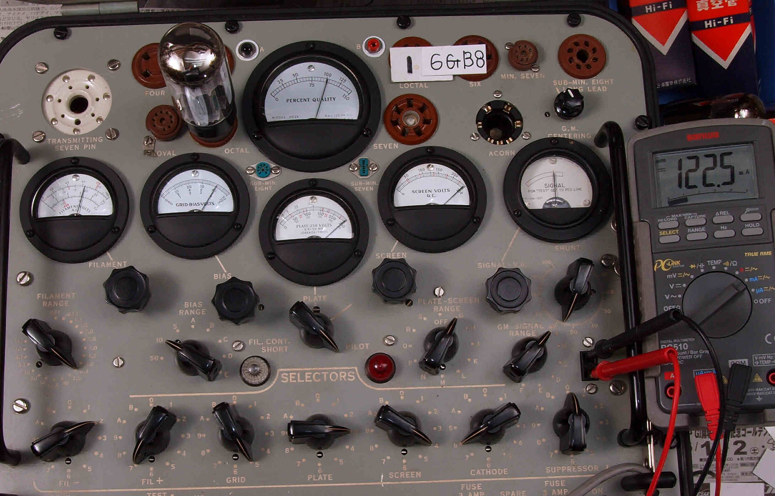 左上 1本目 6G-B8 測定。 Gm=20000μmho、Ip=122.5mA。