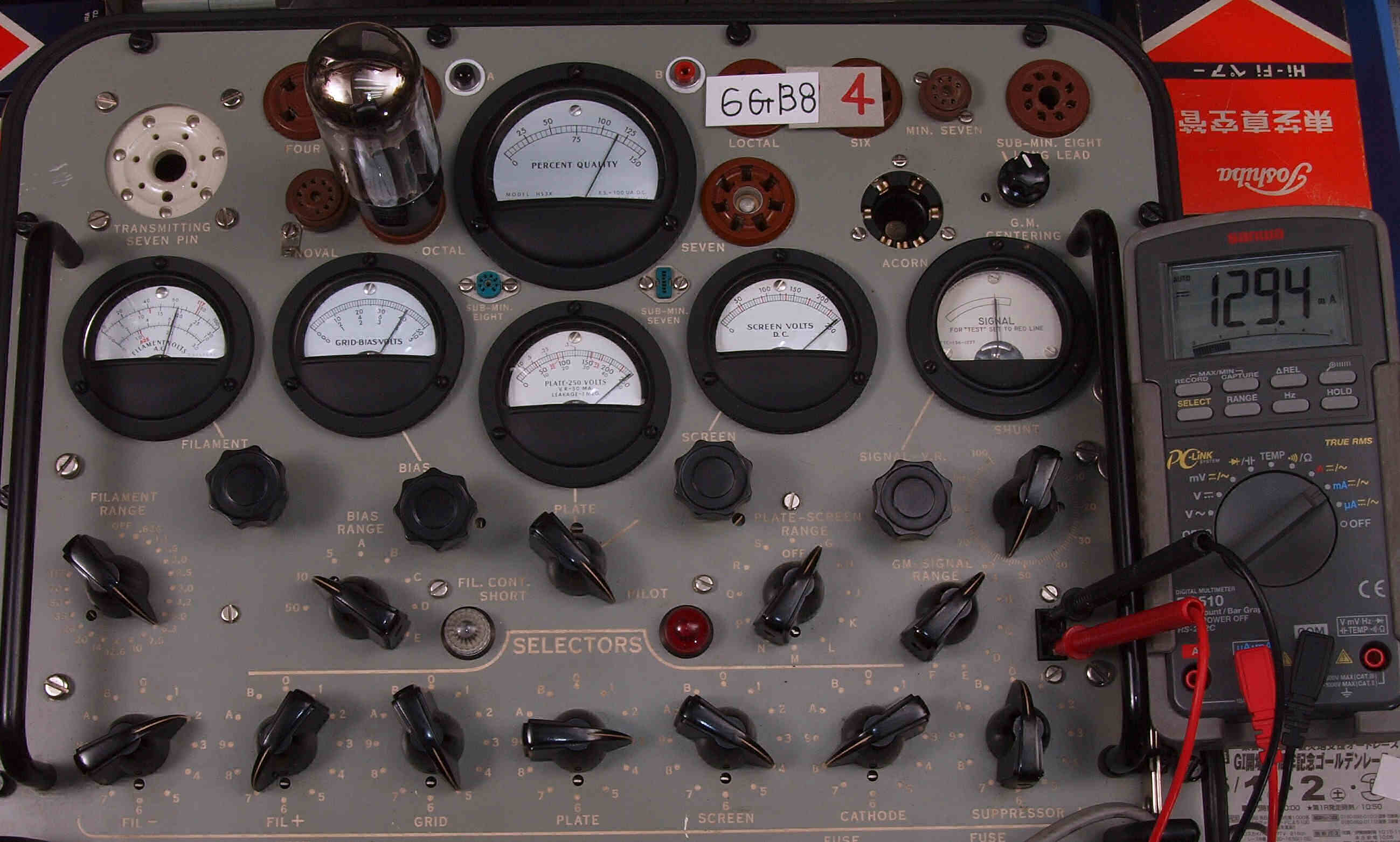 • 1本目 6G-B8 測定。 Gm=20000μmho、Ip=97.6mA。