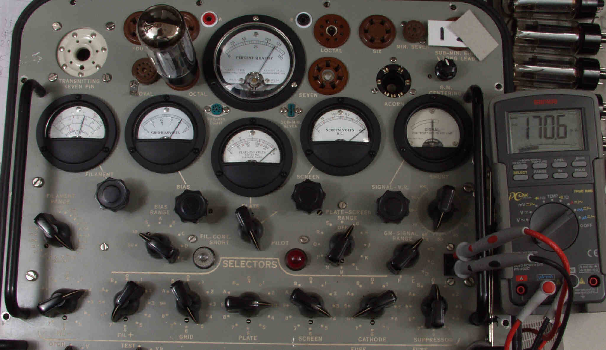 M1. 1本目 6G-B8 測定。 Gm=24000μmho、Ip=170.6mA。RangeSW=A、FullScale=30000μmho。