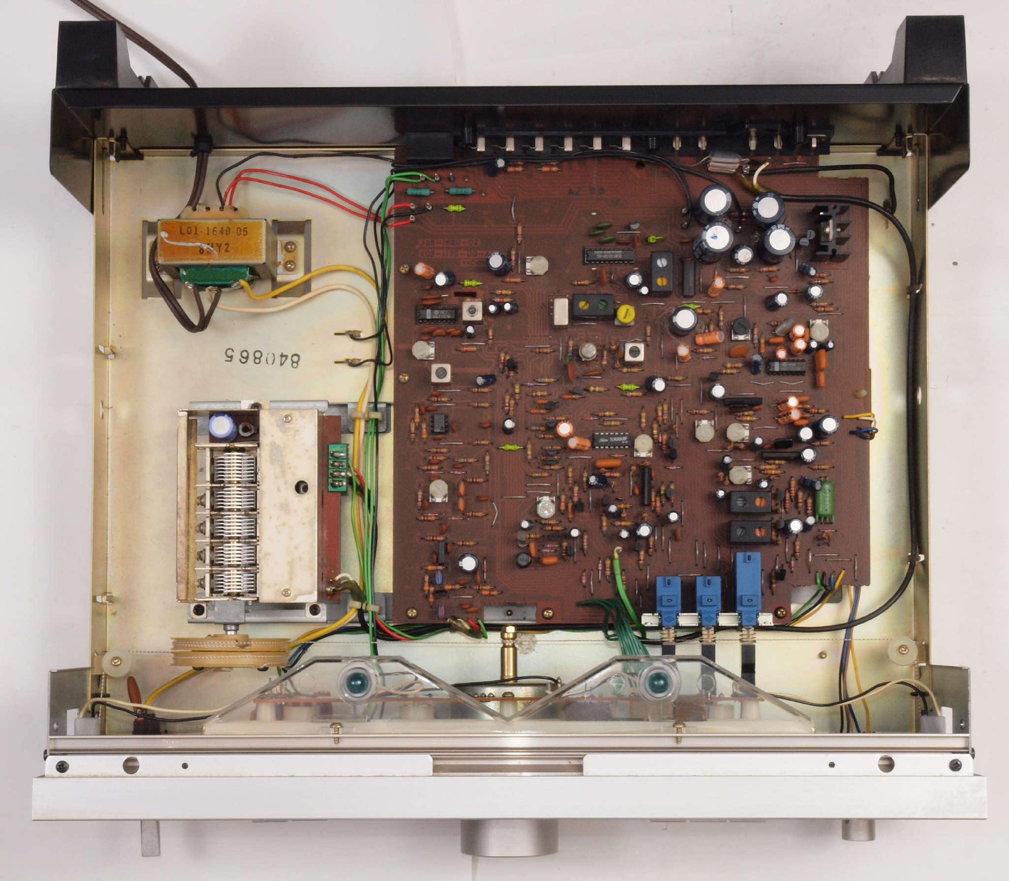 | C12. 修理後 メイン基板。 フイルムコンデンサー6個、電解コンデンサー52個、半固定VR10個、TR(トランジスター)14個、IC7個交換 |