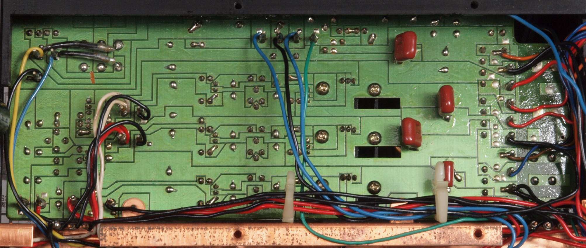 | C14. 修理(半田補正)後 電源基板裏。 半田を全部やり直す。 フイルムコンデンサー4個追加。 | ||||||||||||||||||||||||||||||||||||||||||||