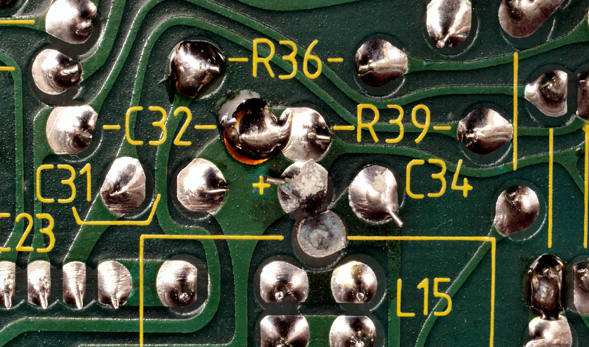 | C26. 修理中 基板腐食ケ所2、裏側 | ||||||||||||||||||||||||||||||||||||||||||||||||