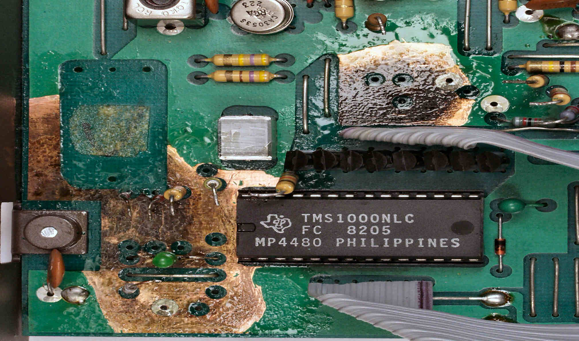 | C. 修理状況。 画像をクリックすると、大きく(横幅2050ドット)表示されます。 C11. 修理前 基板腐食ケ所1、バックアップ電池及び電解コンデンサーからの液漏れ。 |