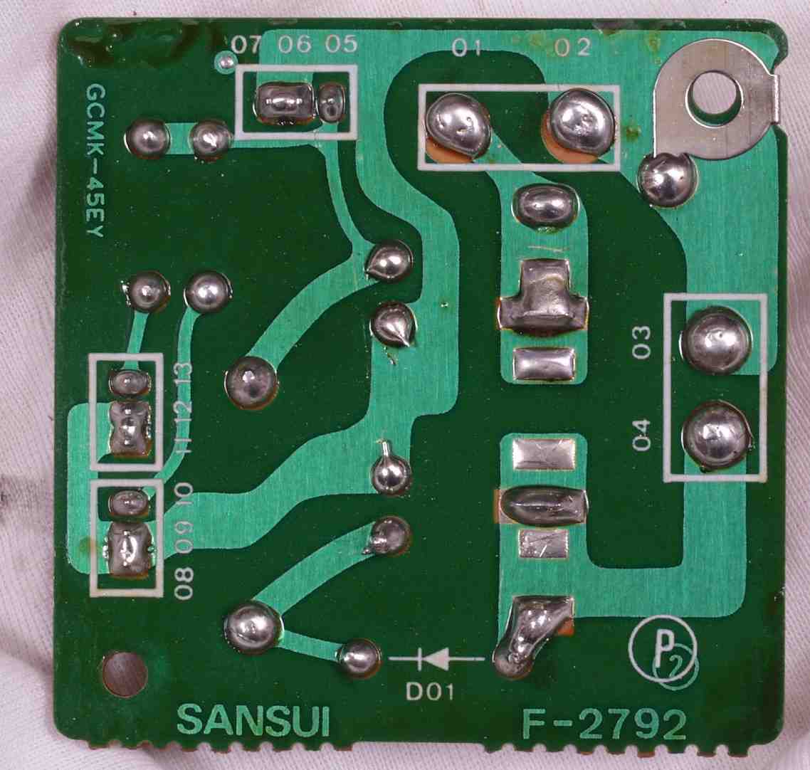 | C5D. 修理(半田補正後)後 AMアンテナ選択基板裏 全半田をやり直す | ||||||||||||||||||||||||||||||||||||||||||||||||||||||||||||||||||||||||||||