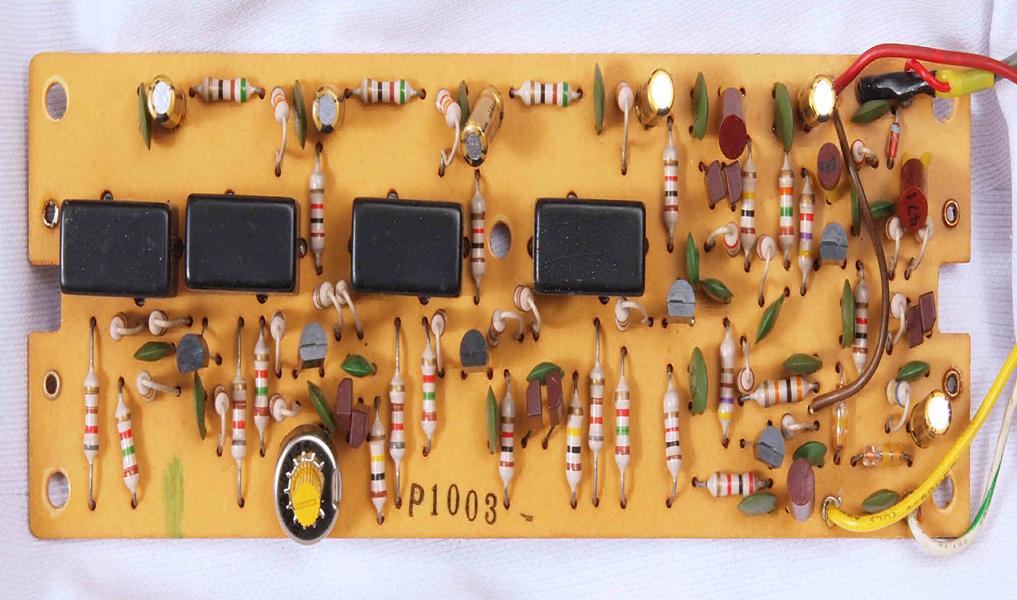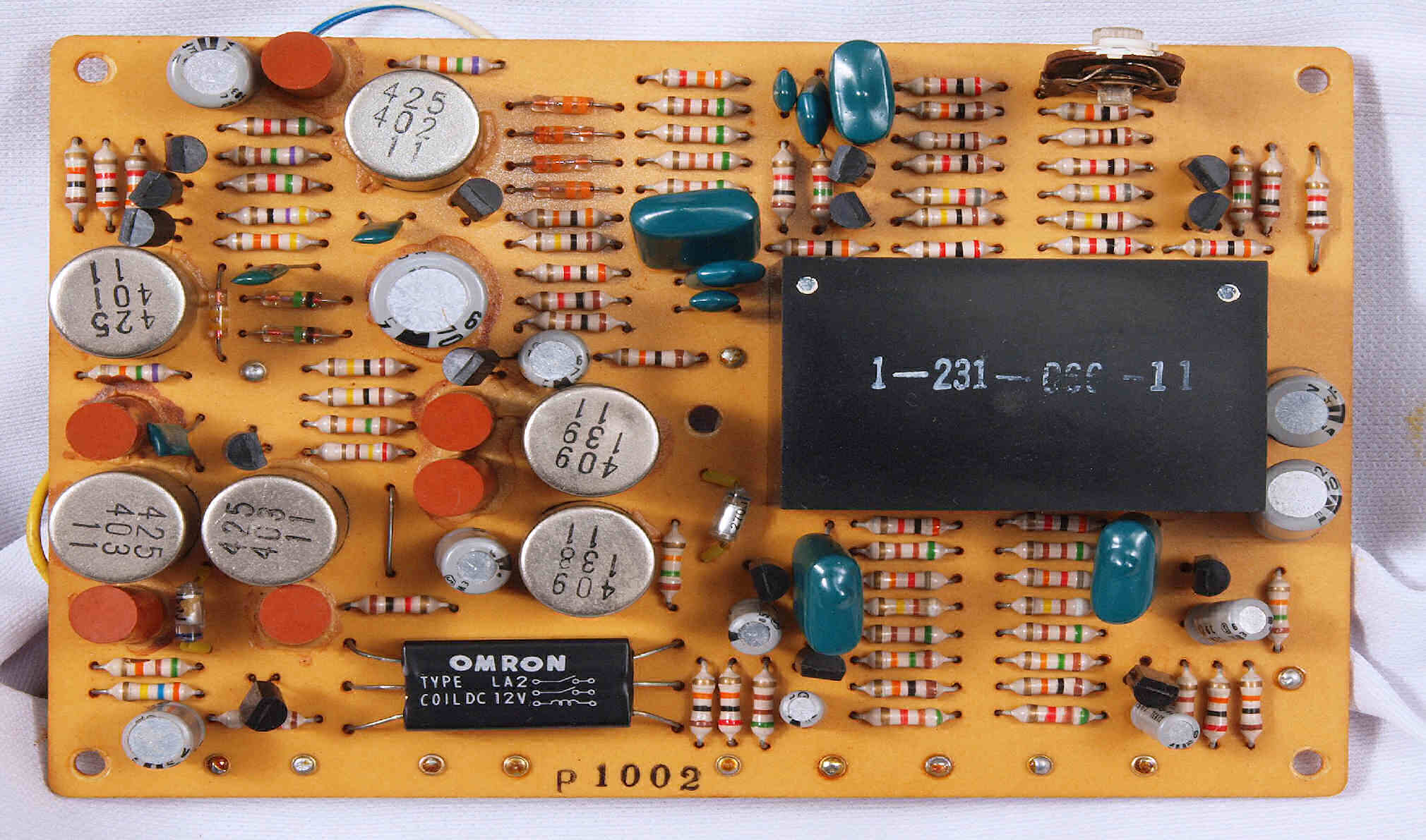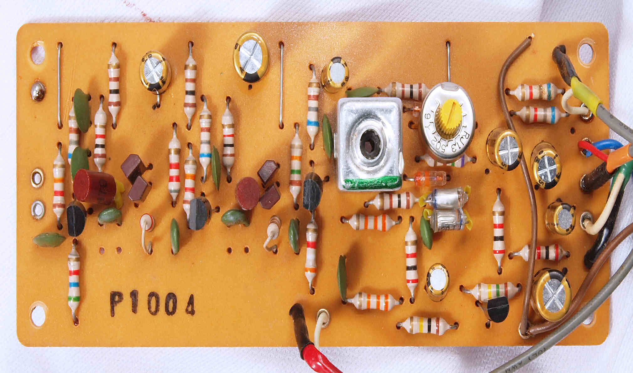 | A43. 点検中 この時代の基板の部品は、人間が挿入して半田付けをしたので、リード線が確実に曲げてあり、取るのも大変。 | ||||||||||||||||||||||||||||||||||||||||||||||||||||||||||||||||||
