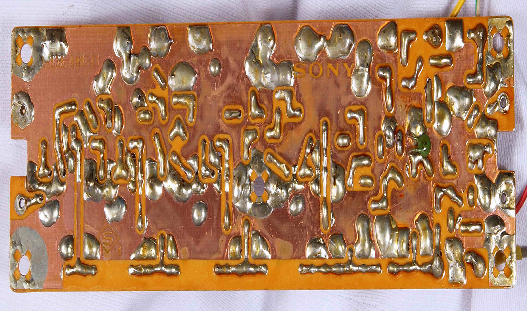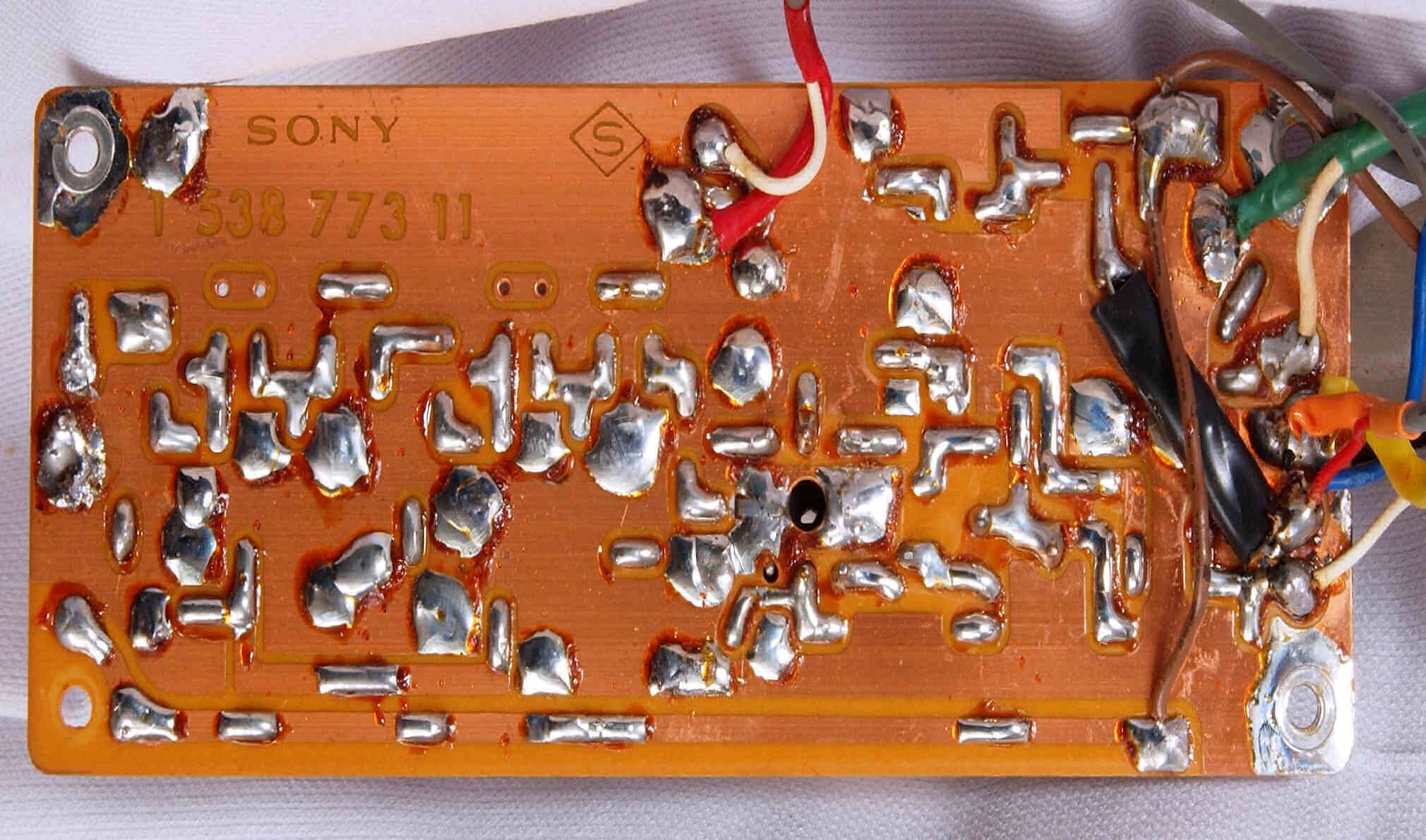 | C44. 修理(半田補正)後 DET基板裏、 全半田やり直し。 銅箔への配線は、表へ移動する。 | ||||||||||||||||||||||||||||||||||||||||||||||||||||||||||||||||||