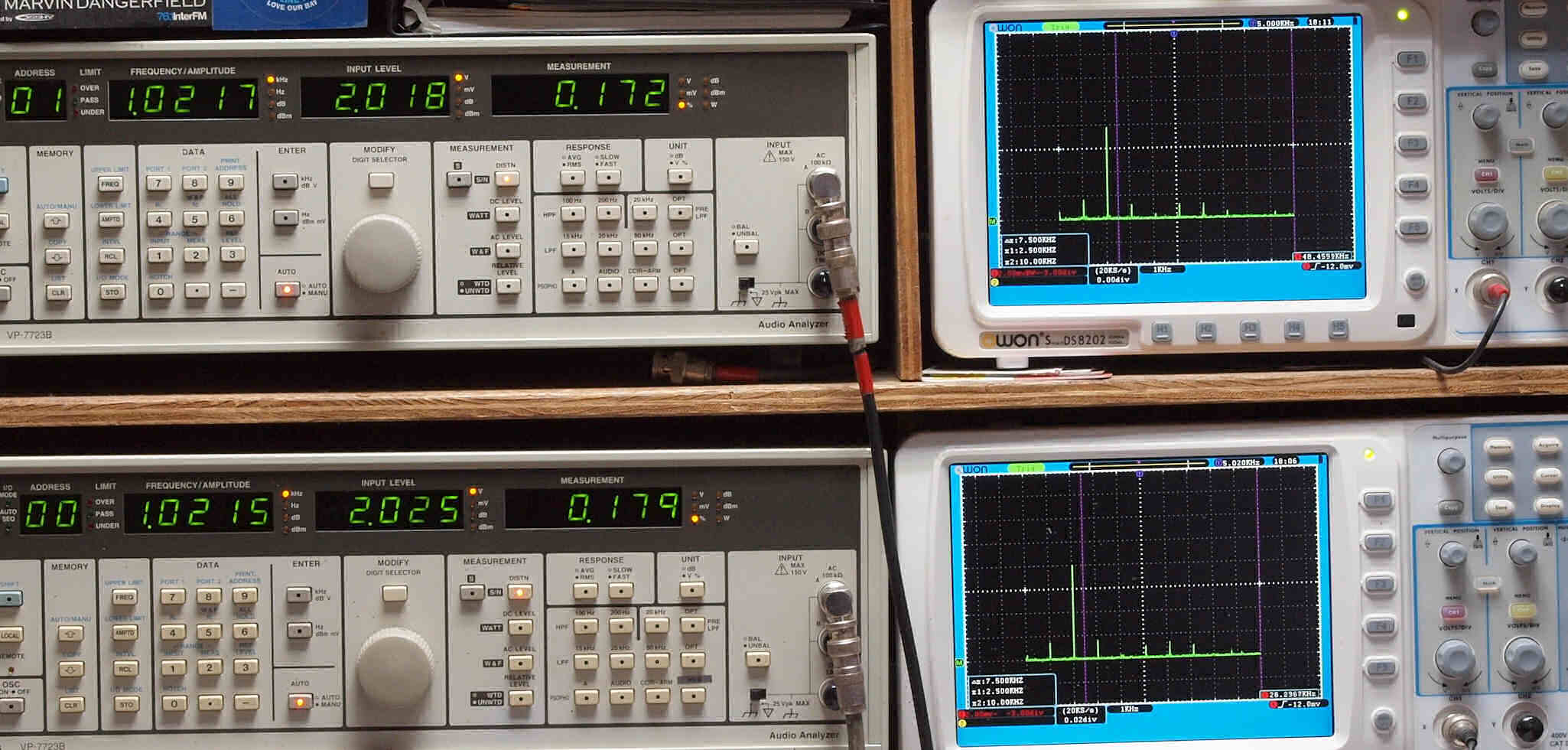 よって、ダイアル設定出力レベルより低くなります。測定機器の仕様や整備の様子はこちら、「VP−7723B」「VP−7201A」。 FFT画面の見方はこちら。