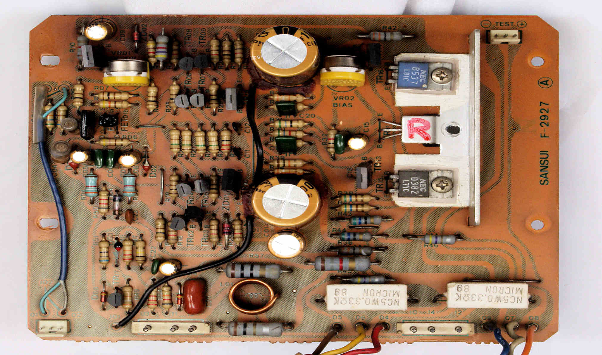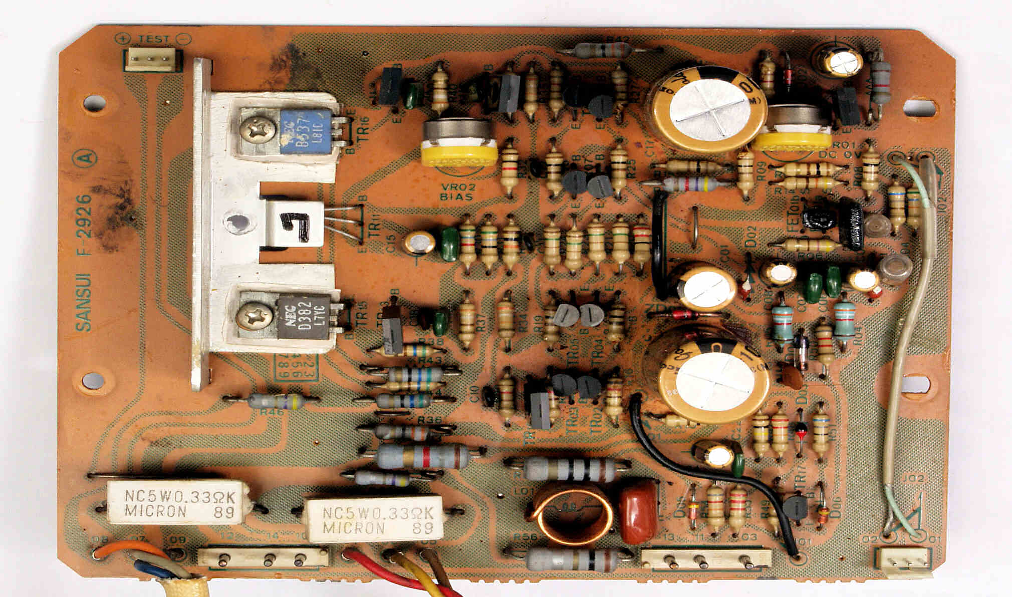 | C2B. 修理後 L側ドライブ基板 初段FET(電界効果トランジスター)、半固定VR2個、電解コンデンサー8個交換 | ||||||||||||||||||||||||||||||||||||||||||||||||||||||||||||||||||||||||