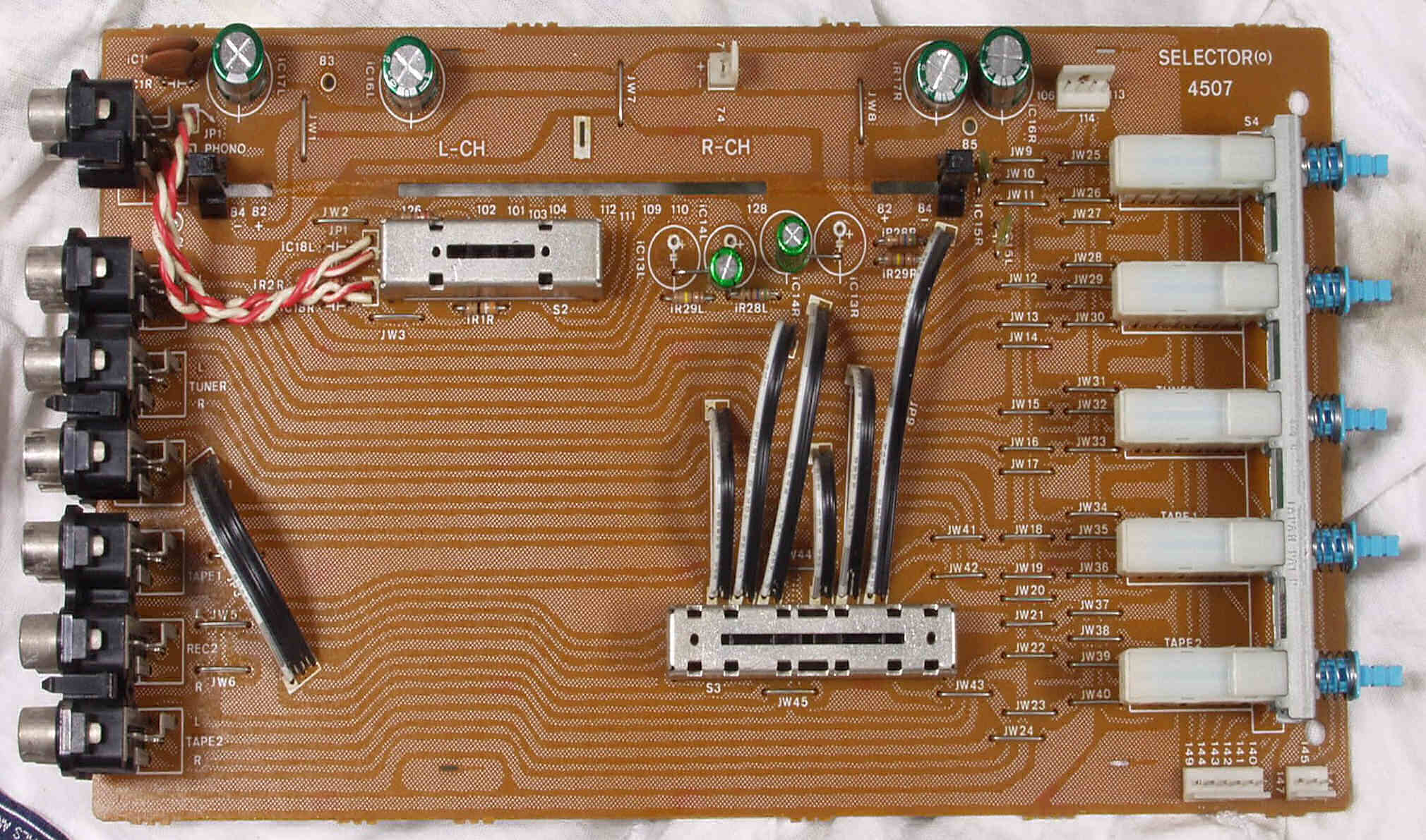 | C−7B. 修理後 コントロール基板 FET(電界効果トランジスター)2個、電解コンデンサー10個、SW4個交換 |