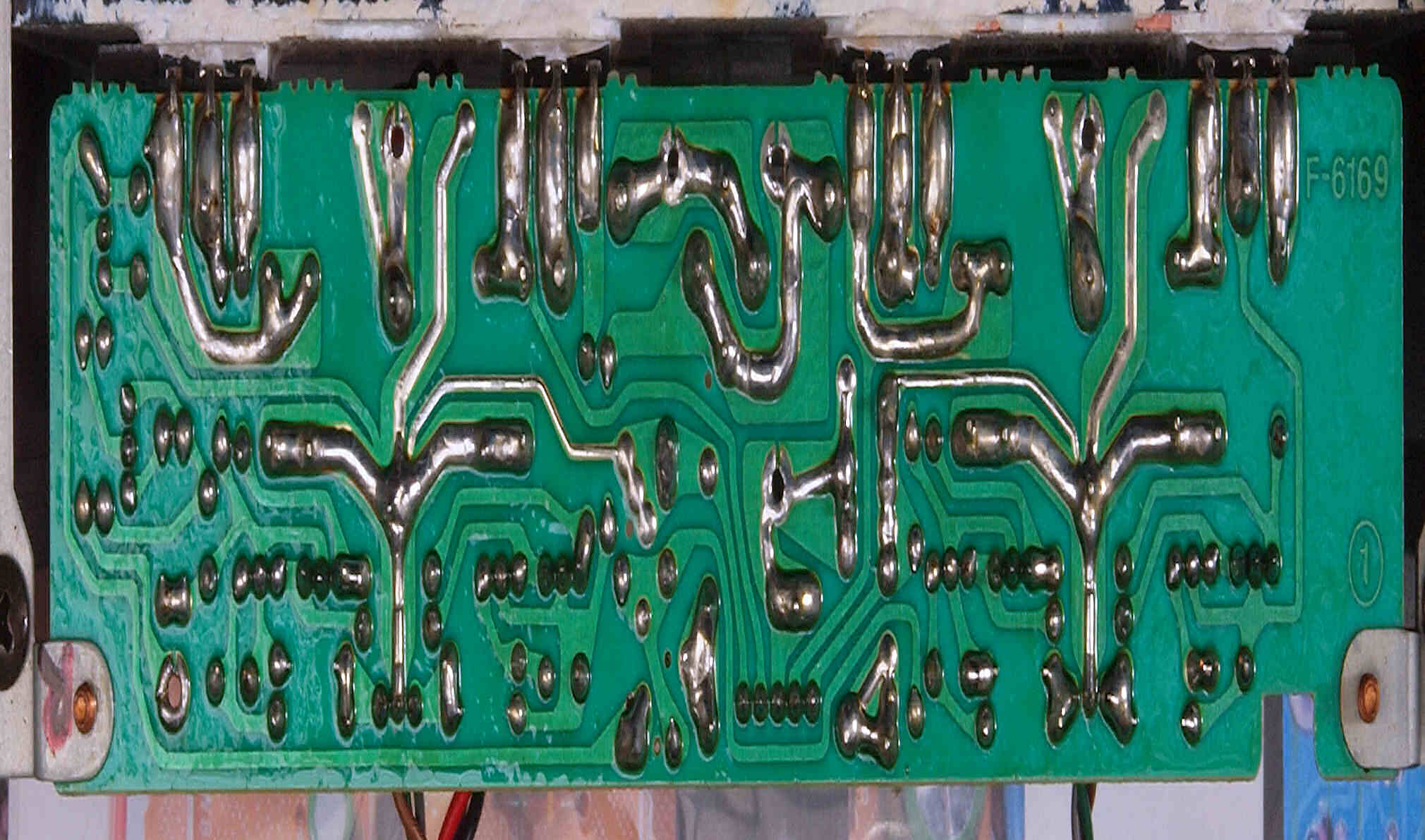 | C74. 修理(半田補正)後 EQ基板裏、 全半田やり直し。 | ||||||||||||||||||||||||||||||||||||||||||||||||