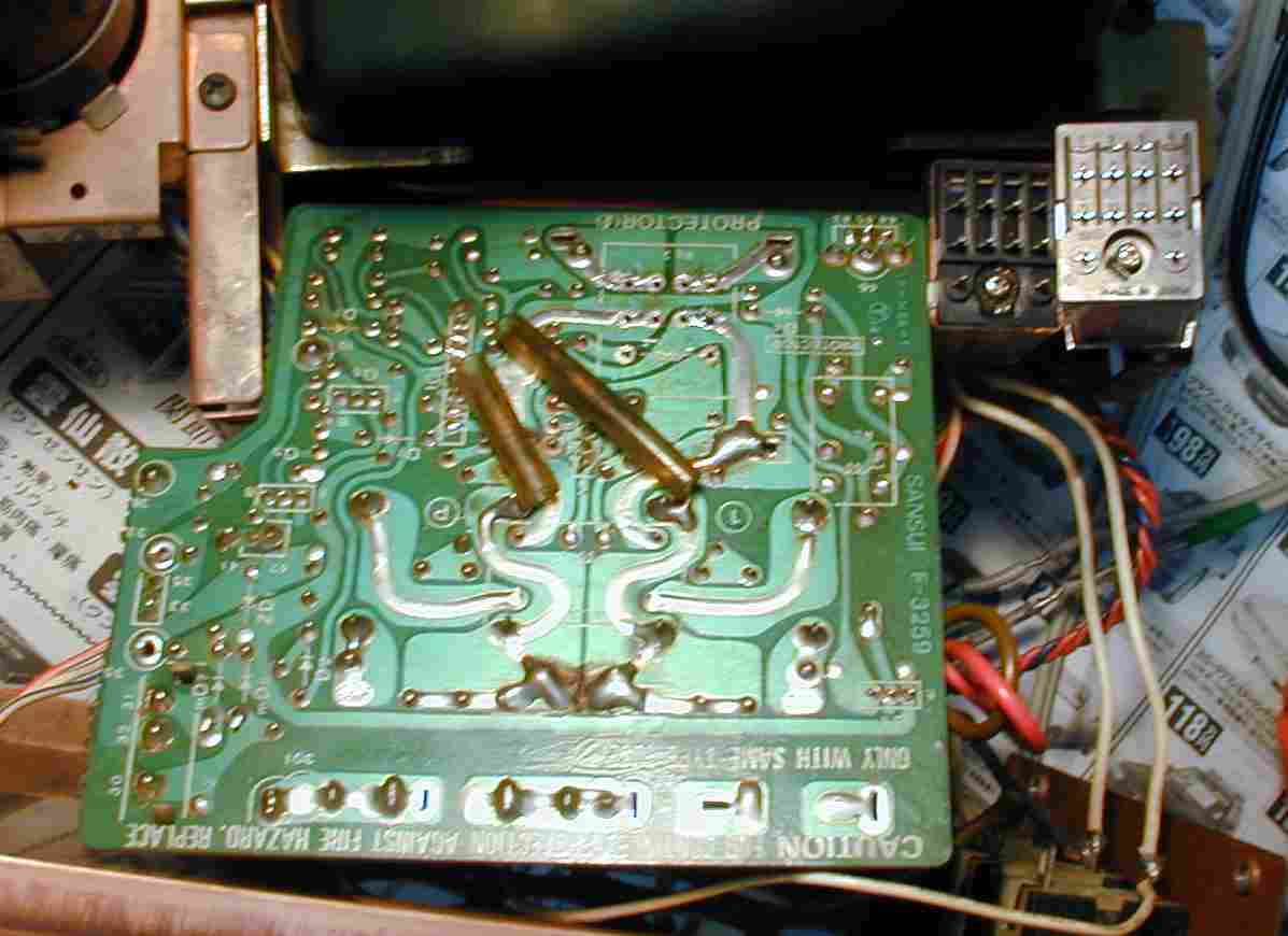 下の基板の左右のバイアス用半固定VR(ボリューム)はは新しく交換した物 |