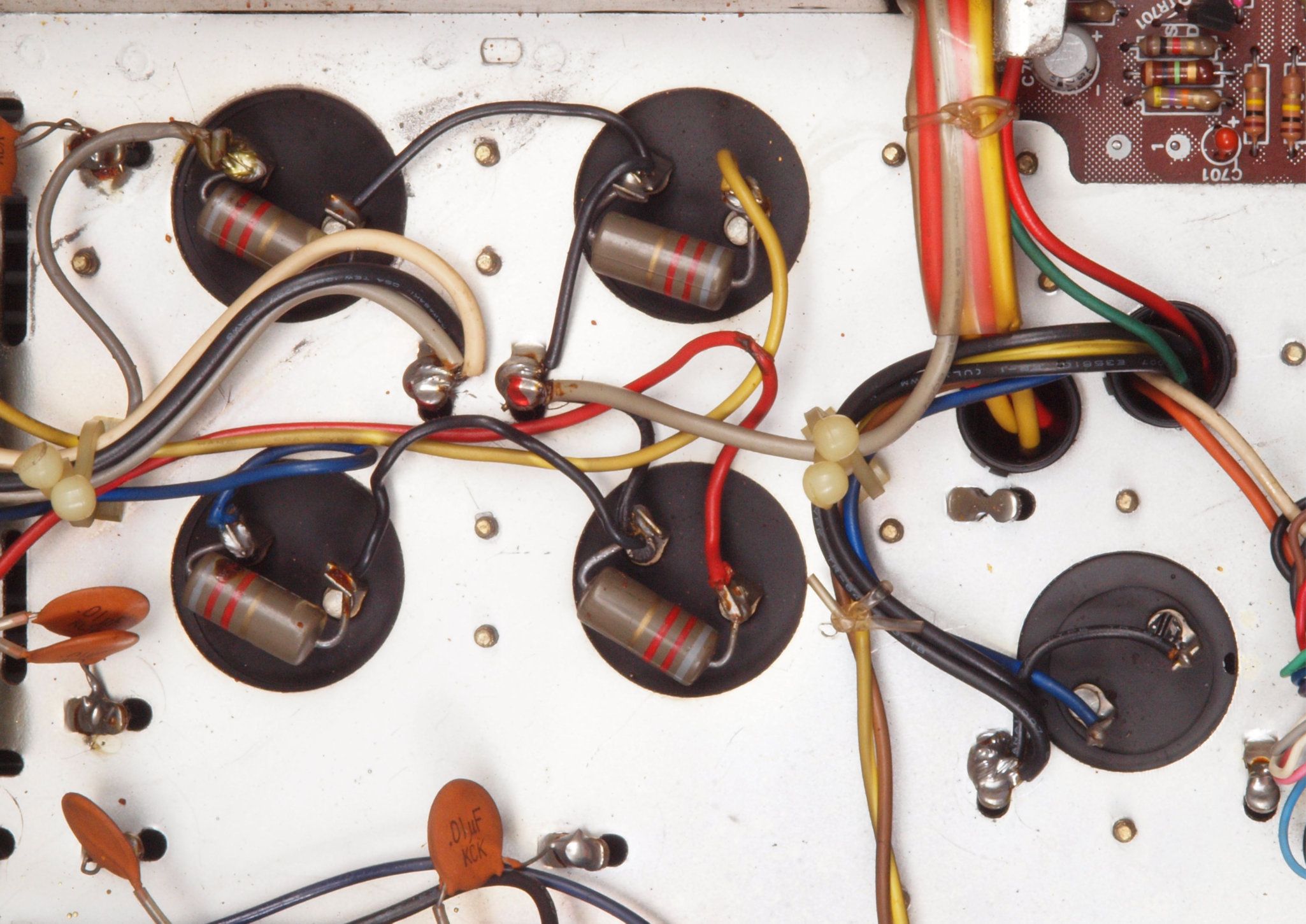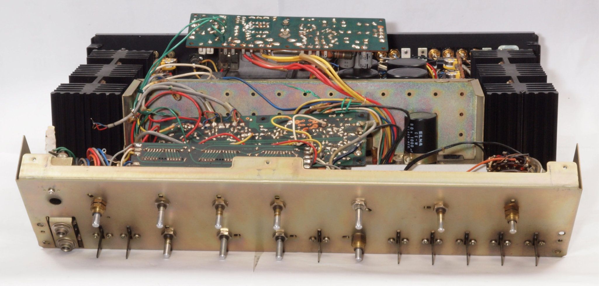 A58. 点検中 EQ−AMP基板コネクターの下配線、基板へのバイパス配線が施されている。
