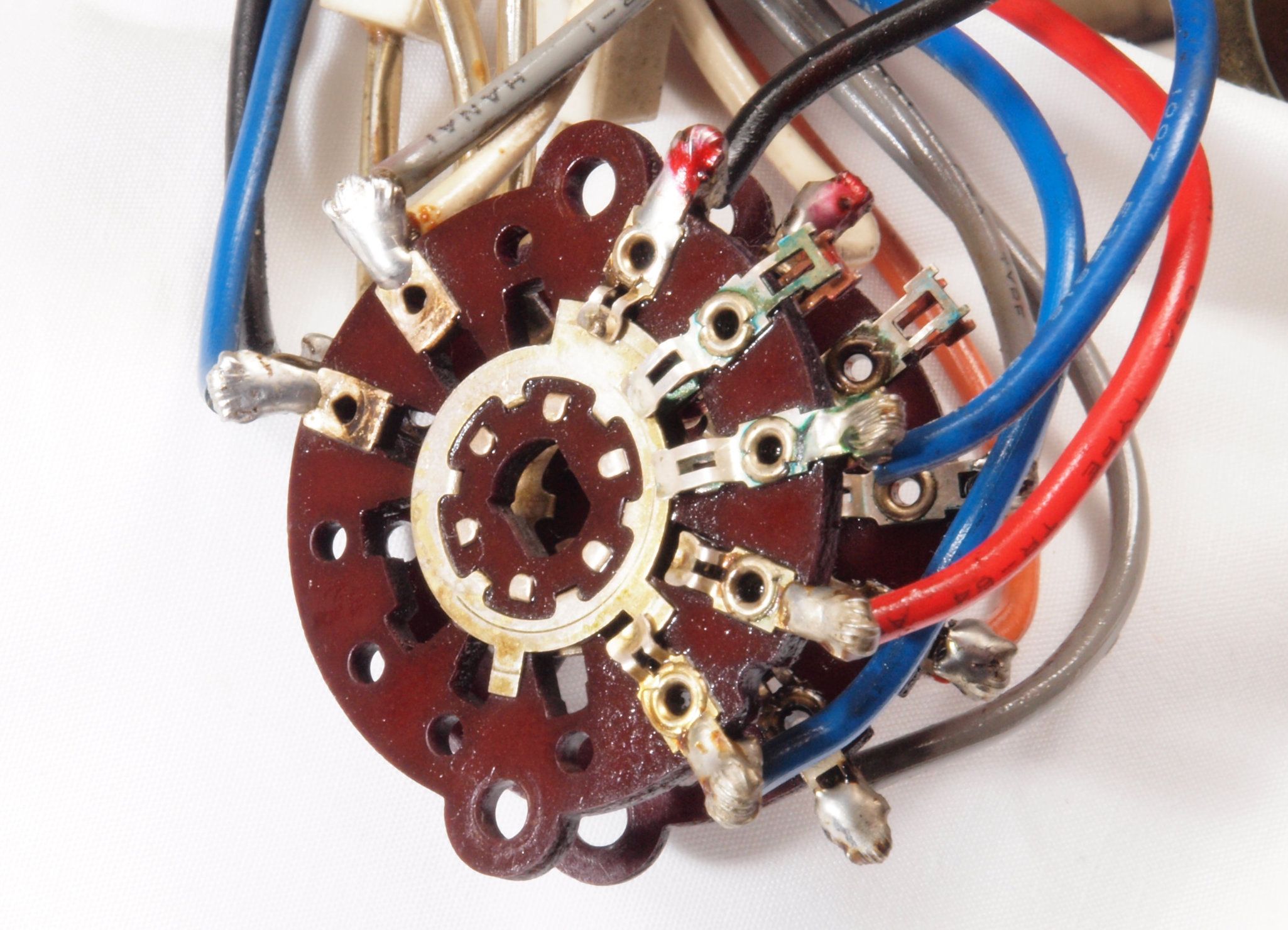 A63. 点検中 交換するテフロン絶縁製RCA端子。 中心電極は円筒状で4つ割方式。