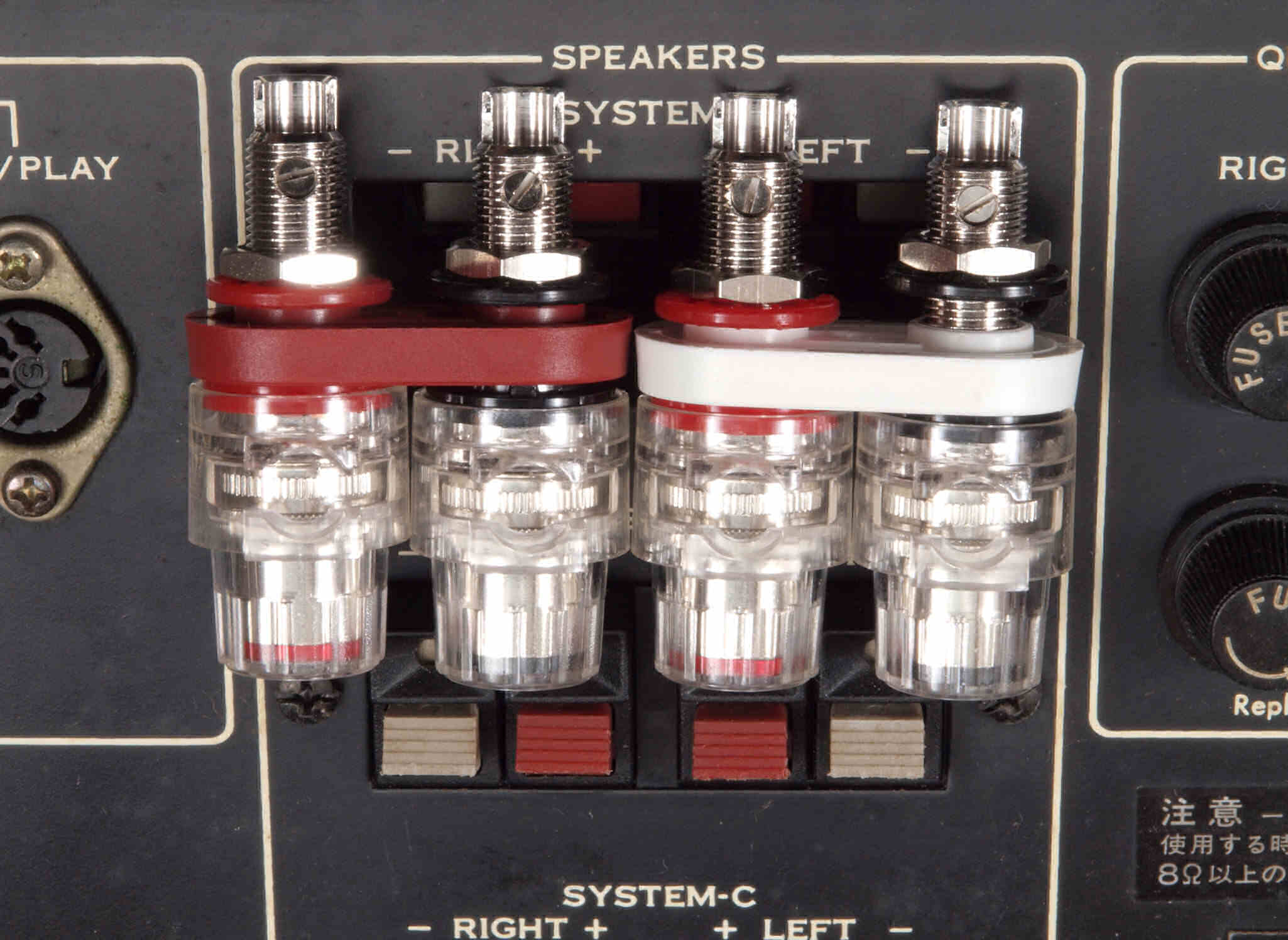 A73. 点検中 SP接続端子。 手持ち中国製「WBT0730のロジュームメッキ擬き」4組8個に交換。